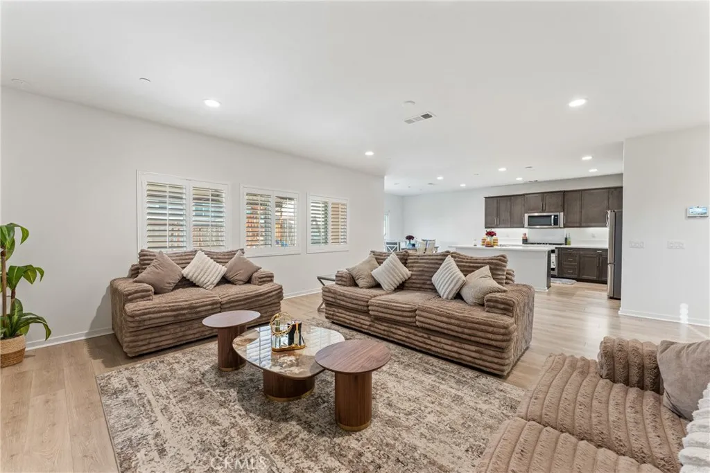 PAID OFF SOLAR PANELS Welcome to this stunning 2022-built home located in one of Fontanas most desirable gated communities, perfectly situated on a quiet cul-de-sac. Designed with luxury, comfort, and modern efficiency in mind, this beautifully upgraded residence offers exceptional value and turnkey living. Step inside to an open-concept floor plan featuring high-end finishes throughout from Vinal flooring and designer touches to a bright, spacious living area ideal for both everyday comfort and entertaining. The gourmet kitchen impresses with sleek countertops, quality cabinetry, and stainless-steel appliances. The outdoor spaces are equally impressive. The backyard has been fully upgraded, offering a refined and low-maintenance retreat perfect for gatherings, relaxation, or play. The front yard has also been professionally landscaped, enhancing the homes curb appeal and creating a warm welcome every time you arrive. Energy efficiency is a major highlight with fully paid-off solar panels, providing significant long-term savings with no lease or financing to assume. The garage is finished with custom cabinetry and a high-end epoxy floor, offering exceptional storage and a clean, showroom-quality look. Located in a secure gated community, this home offers privacy, peace of mind, and a lifestyle of convenience just minutes from parks, shopping, dining, and major commuter routes. A true turnkey gem in Fontana modern, efficient, upgraded, and ready to move in.