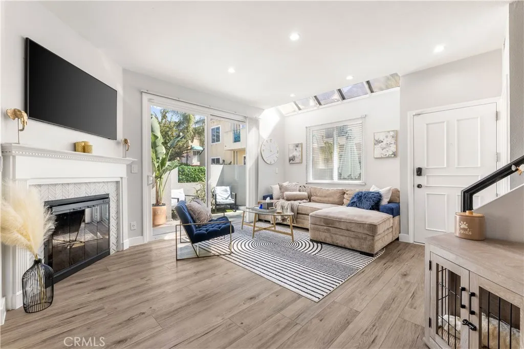Do not miss this Modern Elegance in the hearth of Inglewood .Welcome to a rare opportunity to own a beautiful upgraded residence in one of the Inglewood's most sought after gated communities. This home blends contemporary sophistication with everyday comfort. Offering a turnkey lifestyle just steps from world- class entertainment and dining. Interior Highlights filled with natural light from an overhead skylight. The open floor plan features a resurfaced electric fireplace, a private balcony, wraparound patio that's a perfect for entertaining. Stainless steel kitchen appliances include refrigerator. Dishwater, Stove, and built in microwave. Samsung washer and dryer tucked behind custom bookshelf doors in a one-of-kind laundry room design. Eclectic fireplace sitting at the center of the entertainment room. Seller has recently invested in a full suite of luxury and efficiency driven enhancements, ensuring lasting value and comfort .Fully renovated master bath with sap-inspired jacuzzi tub with heated seating, illuminated smart mirror vanity, and smart adjustable faucet .Newly added attic access with full bedroom dimension for convenient storage (rare in community).New HVAC system with 10-year warranty. All new bathrooms with modern vanity. New vinyl flooring and fresh paint throughout. New garbage disposal. Double- Paned windows . Many other features must visit to see it.