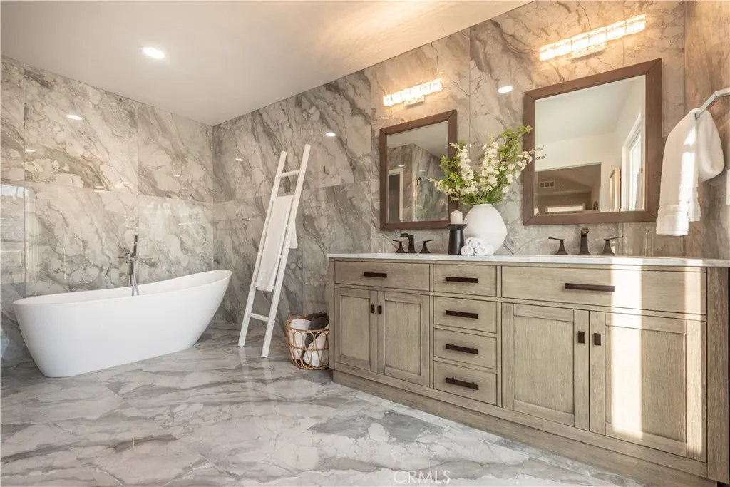 Beautifully renovated 4-bedroom, 3-bath home in the heart of Northwood. Nearly every part of the property has been updated, including a permitted approx. 237 sq ft addition that creates an extra bedroom and expands the living space (buyer to verify). Inside, the home features fresh interior paint throughout (including garage), all new flooring, new interior and closet doors, and all new lighting. The kitchen was taken down to the studs and rebuilt with new plumbing, electrical and gas lines, custom cabinetry, tile, sink and faucet, disposal, and a full suite of newer appliances. All bathrooms were fully remodeled with new plumbing and electrical, new tile, tubs/showers, toilets, faucets, vanities and mirrors. Additional upgrades include a reconfigured primary suite with new walk-in closet, new marble bay-window sills, new stair rail with engineered-stone detail, new water heater, water softener, and updated HVAC, water and gas lines. Exterior improvements include new dual-pane windows, new roof, fresh exterior paint, extensive new concrete hardscape, new iron entry gates, new fencing, synthetic turf, refreshed landscaping, and new rain gutters. The garage has a new ceiling and epoxy flooring. Turnkey home in an established Irvine neighborhood close to parks, shopping, and award-winning schools.