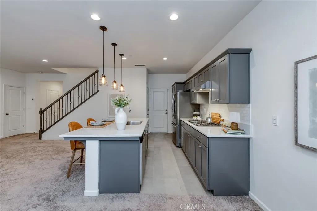 Welcome home to the award-winning Riverstone Community! This turnkey home is ready for immediate occupancy! The home features an open layout with the kitchen overlooking the great room. The kitchen features stainless steel appliances, gas range, breakfast bar, and pantry. Upstairs you will find the primary suite plus 2 additional bedrooms. The primary suite features a lovely balcony, huge closet, a separate shower and tub (both oversized) and a private water closet. There are upgraded dark grey cabinets in both the kitchen and bathrooms all topped with solid surface countertops. The yard features decomposed granite and a wonderful pergola. Solar to keep energy bills low and an alarm system for security. The amazing resort like community features community parks, club house, pool, spa, and fitness center. Groceries and restaurants a close golf cart ride away at Ave 12 and Hwy 41. Go see it today!