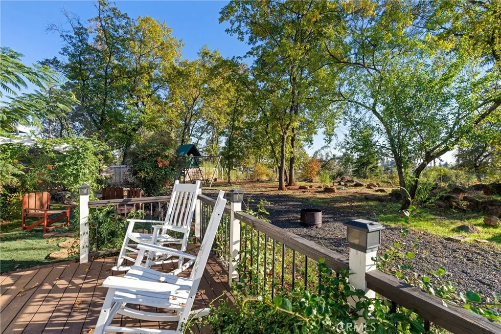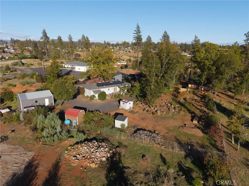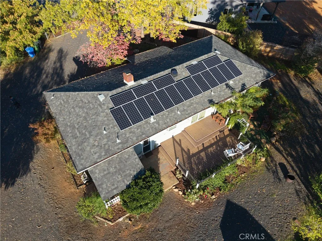 Welcome to your own slice of Paradise! This charming 1950s home blends vintage character with modern upgrades, offering a warm and inviting retreat on a private lane. Featuring 3 bedrooms, 2 bathrooms, and 1,612 square feet of living space, the home sits on a spacious 0.81-acre lot. Inside, you'll find original hardwood floors that have been beautifully refinished, complemented by new carpet, fresh paint, and a renovated kitchen. The home is equipped with 18 owned solar panels, a whole-house water filtration system, and a mini-split HVAC system installed in 2018. The roof was replaced in 2017, ensuring peace of mind for years to come. Step outside to enjoy breathtaking sunset views from the expansive deck, perfect for entertaining. A covered BBQ area makes year-round grilling a breeze. The property also includes a 900 sq ft insulated detached garage/shop with 50amp service and 220v, ideal for hobbyists or DIY enthusiasts. Two detached sheds provide ample storage, and the fully fenced yard with an electric gate offers privacy and security. Located close to Starbucks, restaurants, shopping, and just a short drive to Chico, this home offers both tranquility and convenience. Come experience the charm and character of this lovingly maintained Paradise gem.