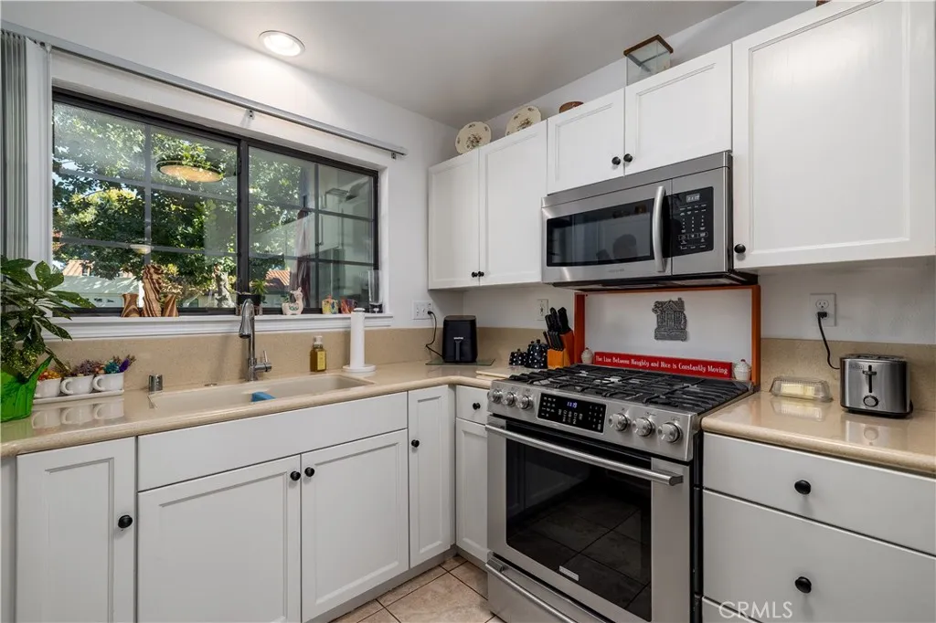 Welcome to this rare former model home in the gated 55+ community of Sunwest Villas. This is the largest floor plan available at 1,286 sq ft and sits on the community's largest lot, offering the comfort, privacy, and easy living so many seniors are looking for. Step inside to an inviting open layout filled with natural light. The upgraded kitchen features Corian counters, stainless steel appliances, and a cozy breakfast nook that leads to a covered, fenced back patio with a peaceful greenbelt view. Its the perfect place for a quiet morning or an afternoon with friends. The garage offers direct access to the kitchen, making unloading groceries a breeze. The living room feels warm and welcoming with luxury vinyl plank flooring, a fireplace, and large windows that brighten the space. The primary bedroom includes dual closets and an en-suite bath with a jetted walk-in tub designed for comfort and accessibility. A second bedroom and nearby bathroom with a walk-in shower offer comfort and privacy for guests. Youll also appreciate the indoor laundry area, neatly tucked behind mirrored doors and complete with a stack-able washer and dryer with plenty of room to switch to a full-size setup if you prefer. The home features oversized halls and doorways, ideal for anyone using a walker or wheelchair. Recent updates include newer carpet, upgraded 10-year smoke and carbon monoxide detectors, and a freshly serviced heater with new filters. The attached one-car garage has no steps, and the extra-long driveway (the longest in the Villas) can accommodate two additional cars. This model is a