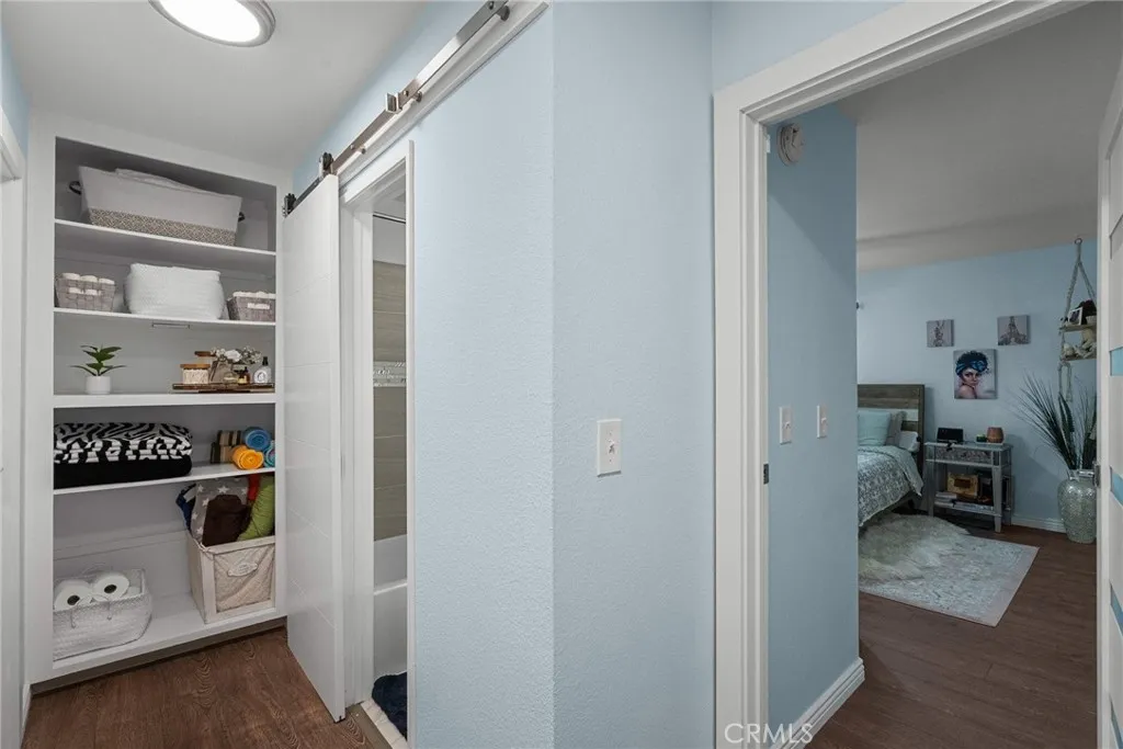 Beautifully Remodeled 3-bedroom + Bonus Room/Office offers the perfect blend of comfort and style. Step inside to a spacious living room featuring a cozy gas fireplace, 6 recessed LED smart lights that change colors, modern flooring, and abundant natural light from a sliding glass door leading to a private patio. The patio, ideal for outdoor enjoyment, boasts new fencing and is perfect for enjoying the California sunshine. The kitchen is a chef's dream with sleek quartz countertops with stylish herringbone tile backsplash accented with high end and matching Samsung stainless steel appliances. Open to the dining area, this space is perfect for hosting friends and family. A convenient indoor laundry area is also located on this level. You'll feel the true modernization with all new 5 panel Frosted Glass Bianco Noble Finished doors throughout the home. Upstairs, you'll find all three generously sized bedrooms, each with ceiling fans for added comfort. Primary bedroom with city views and en suite bathroom. Updated tiling in the shower and new vanity with led lighted mirror that defrosts. Guest bathroom features a barn door, LED mirror that defrosts and tiled shower with new vanity and faucet. Plus, enjoy the bonus room which is ideal for a home office or gym, equipped with its own AC unit for added convenience. Seller purchased and will provide a matching barn door for the primary bathroom but hasn't installed it. Enjoy the peace of mind that comes with living in a gated community with a private pool, while also being close to shopping, restaurants, Pierce College, the 101 Free