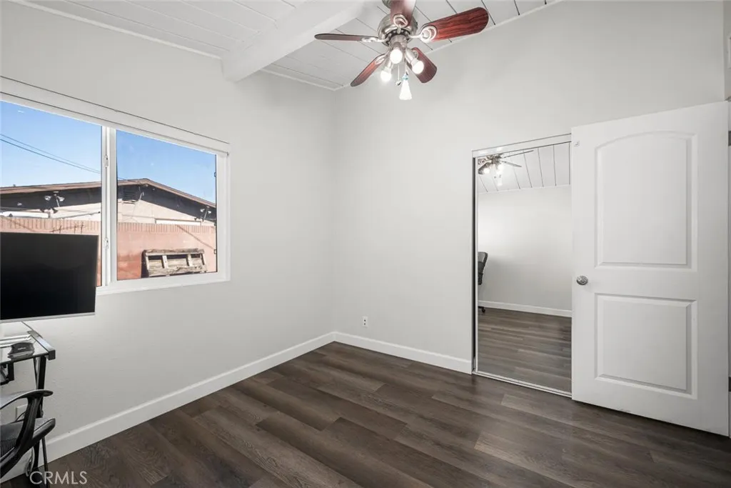 Welcome home to this charming 3-bedroom, 2-bath retreat, expertly updated to blend style and comfort seamlessly. The newly renovated kitchen is a culinary dream, featuring elegant quartz countertops, soft-close cabinets, and a stylish hood. With its open floor plan, this home is perfect for both relaxed living and lively entertaining. Youll love the convenient closet space near the kitchen, adorned with barn doors, and the dining area showcases custom built-ins that add both character and practicality. The spacious master bedroom is a true sanctuary, boasting a newly updated en-suite bathroom complete with a modern shower, chic vanity, and fixtures. Recent enhancements throughout the home include HVAC System with A/C, stucco, exterior paint, beautiful laminate flooring, energy-efficient dual-pane windows, and a newer roof. An inviting office/bonus room offers incredible versatility, featuring internet wiring, stylish new floors, fresh paint, a closet, and a cozy A/C unitmaking it an ideal space for focused work, creative play, or serene relaxation. Step outside to enjoy your own avocado tree, host memorable gatherings, nurture your green thumb, or simply bask in the beauty of nature.