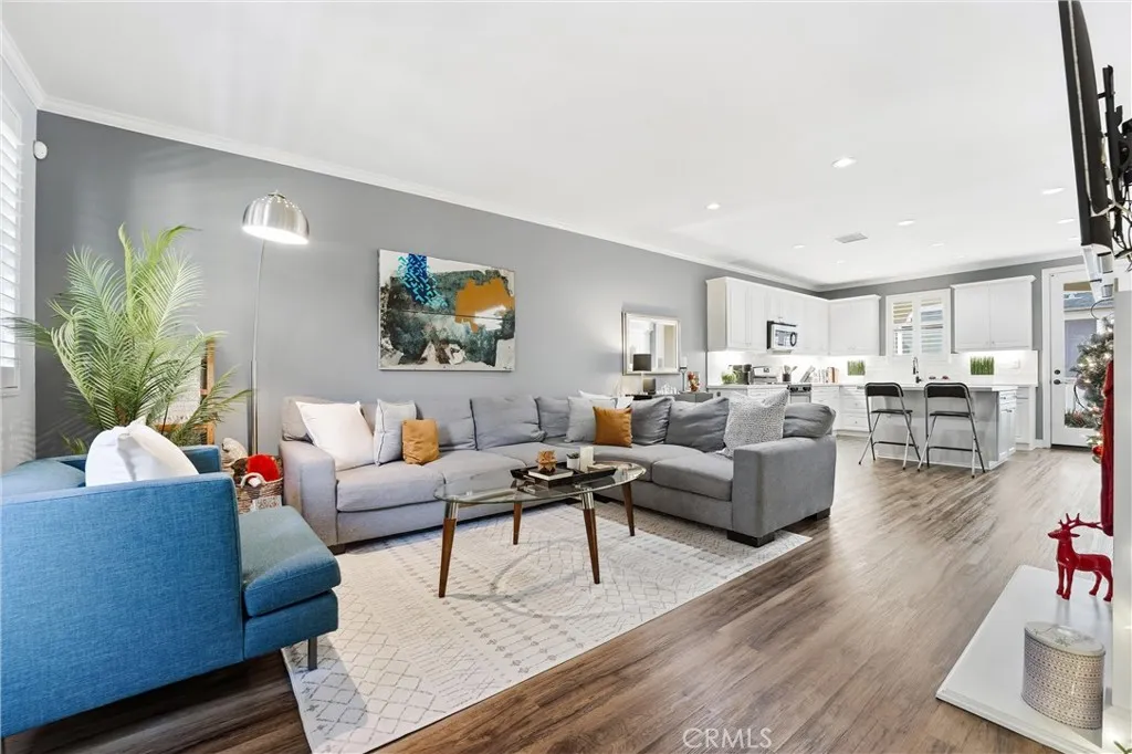 Welcome to 755 Kroeger St, a stylish three-story townhome just steps from the iconic Anaheim Packing District. This home blends comfort, convenience, and community with an unbeatable location and thoughtful interior upgrades. As you step through the front door, you're greeted by a versatile ground-floor bedroom and full bathroomperfect for guests, a private home office, or multigenerational living. Head up to the second floor and you'll find the true heart of the home: a bright, open-concept living space designed for both everyday comfort and effortless entertaining. The kitchen features a large center island with quartz countertops, sleek white cabinetry, stainless steel appliances, and a timeless subway tile backsplash. It flows seamlessly into the dining and living areas, which are filled with natural light and grounded by wood-style flooring and elegant plantation shutters. The laundry closet and half bath are also conveniently located on this floor. Upstairs, the spacious primary suite offers a peaceful retreat with a private en suite bath, while the third bedroom provide flexibility for family, work-from-home needs, or creative spaces. Every inch of this home has been thoughtfully curated with a clean, modern aesthetic that feels both fresh and timeless. Outdoor living gets its moment toowith a charming front porch and second-floor balcony perfect for sipping coffee, relaxing with a book, or catching up with neighbors. And speaking of the neighborhood: this well-kept community is loaded with resort-style amenities including a sparkling pool, a well-equipped gym, clubh