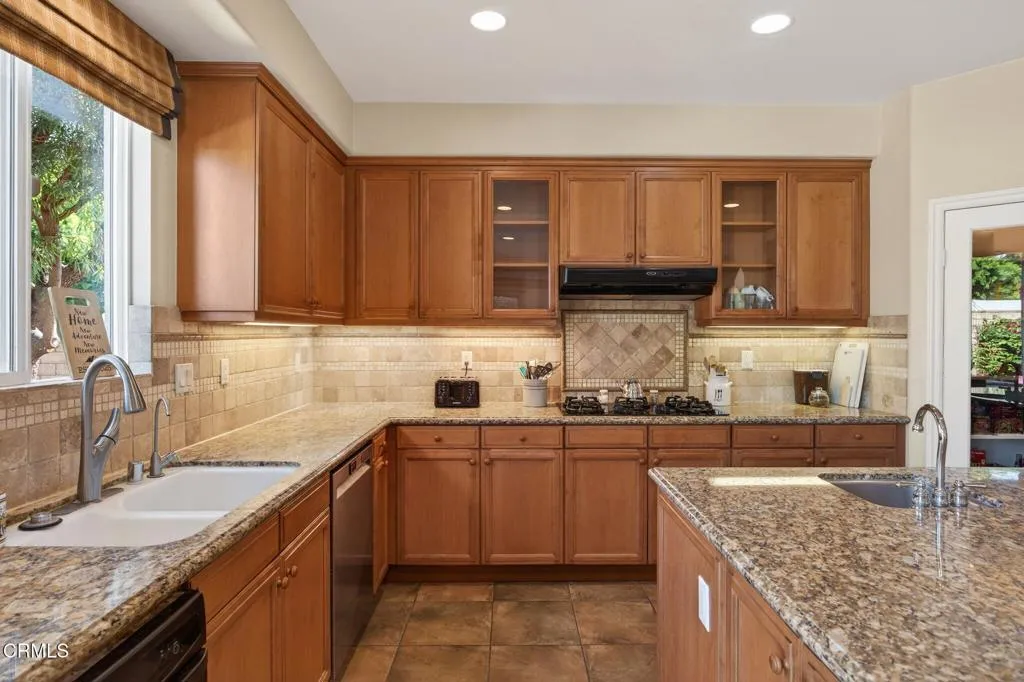 Spacious Spanish Style Former Model Move-In Ready Home located in the desirable Santa Rosa Walk neighborhood. This gorgeous home has 3,181 square feet, 4 Bedrooms, 3 bathrooms. Downstairs has a 4th Bedroom and 3rd bathroom plus an office with built-ins. Roomy living room with 2-story soaring ceilings presents plenty of natural light. Formal dining room for hosting family and friends and direct access to a side patio with a sparkling fountain. Downstairs bedroom and bathroom with large shower is available on the main floor for guests and potential for multigenerational living. Open concept Family room with crackling fireplace and built-ins. Enjoy preparing meals in the Gourmet Kitchen featuring walk-in pantry, breakfast bar, new Stainless Steel Refrigerator and plenty of storage plus a view of the landscaped, private backyard. Dual Zone HVAC. Brand new carpet, new exterior paint and a recent Section 1 Termite Clearance. Upstairs features a Large Primary Suite with his and hers walk-in closets and primary bath with dual vanities, Soaking tub and large tiled shower. Two Upstairs Bedrooms with a Jack-n-Jill bath and an Upstairs laundry room with storage and utility sink. Three car garage-two car parking plus separate one-car garage to use as a workshop or storage. Flexible living areas with ADU potential! Brand new carpet, new exterior paint and a recent Section 1 Termite Clearance. No Mello-Roos and No HOA! Near schools, parks, shopping, and minutes to the popular Ventura Pier, beaches and marinas! *Buyer to verify ADU feasibility with local zoning/building departments. Some p