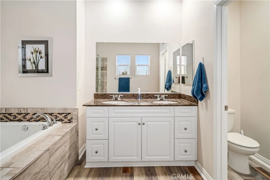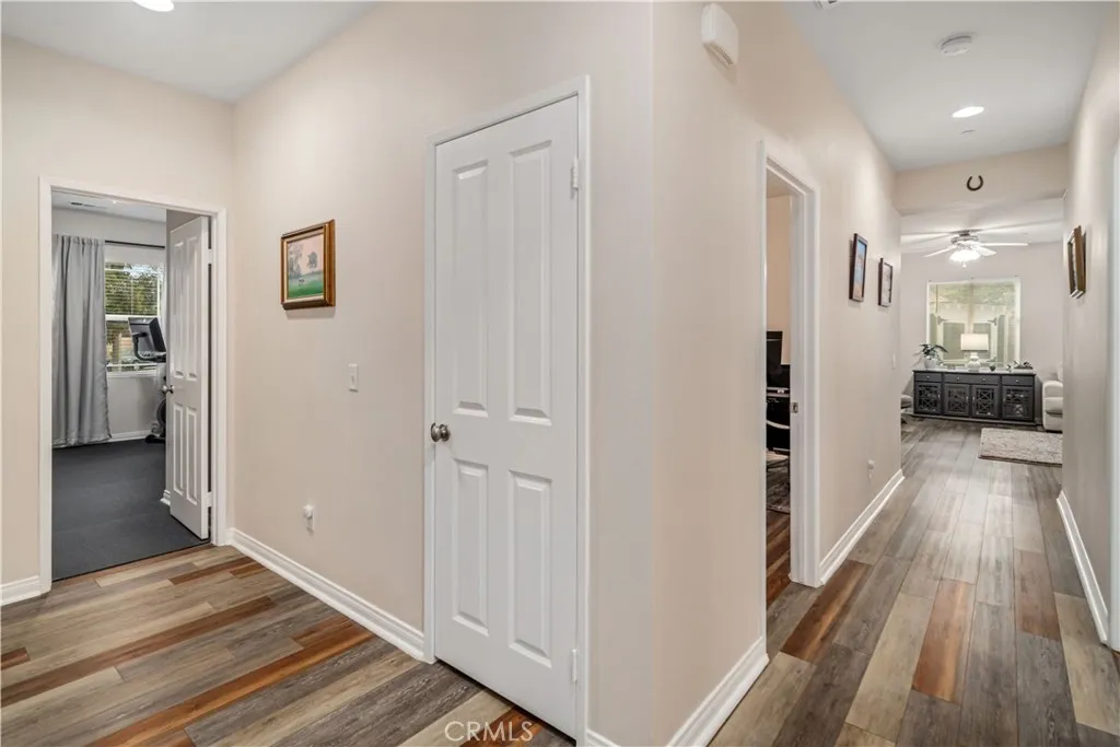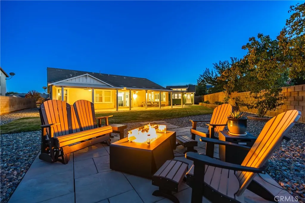 ***LIVE BEAUTIFULLY*** Discover the epitome of luxurious single-story living at 42715 Raywood Drive, where this stunning 4-bedroom home spans nearly 3,000 square feet and boasts over $300,000 in premium upgrades, all without the burden of HOA fees or Mello-Roos taxes. Step inside to a fully remodeled kitchen, laundry, and pantry that redefine functionality and style, featuring an enormous island with custom cabinetry, sleek leathered granite countertops throughout, and coordinated black stainless-steel appliances from the Samsung Bespoke series, offering superior efficiency compared to neighboring layouts. The secondary bathroom has been elegantly transformed with high-end black Moen Voss finishes and a relaxing soaking tub enclosed by glass panel doors, while storage solutions abound with a complete overhaul of the primary bedrooms walk-in closet using built-ins, reconfigurable Elfa systems in the other three bedrooms and linen closet, expanded attic access for additional space, and a convenient hanging storage rack in the garage. Enhancing everyday convenience, the home is equipped with smart features controlling interior lights and switches, the thermostat, front and garage door locks, blinds, irrigation system, landscape lighting, Ring doorbell, and patio camera. Outside, the massive backyard invites endless enjoyment on a fully landscaped oasis, complete with a beautiful 1,200-square-foot lawn, coordinated hardscaping for garden areas and tree sconces, an automated smart irrigation system covering both front and back, thriving fruit trees including lemon, lime, pomegra