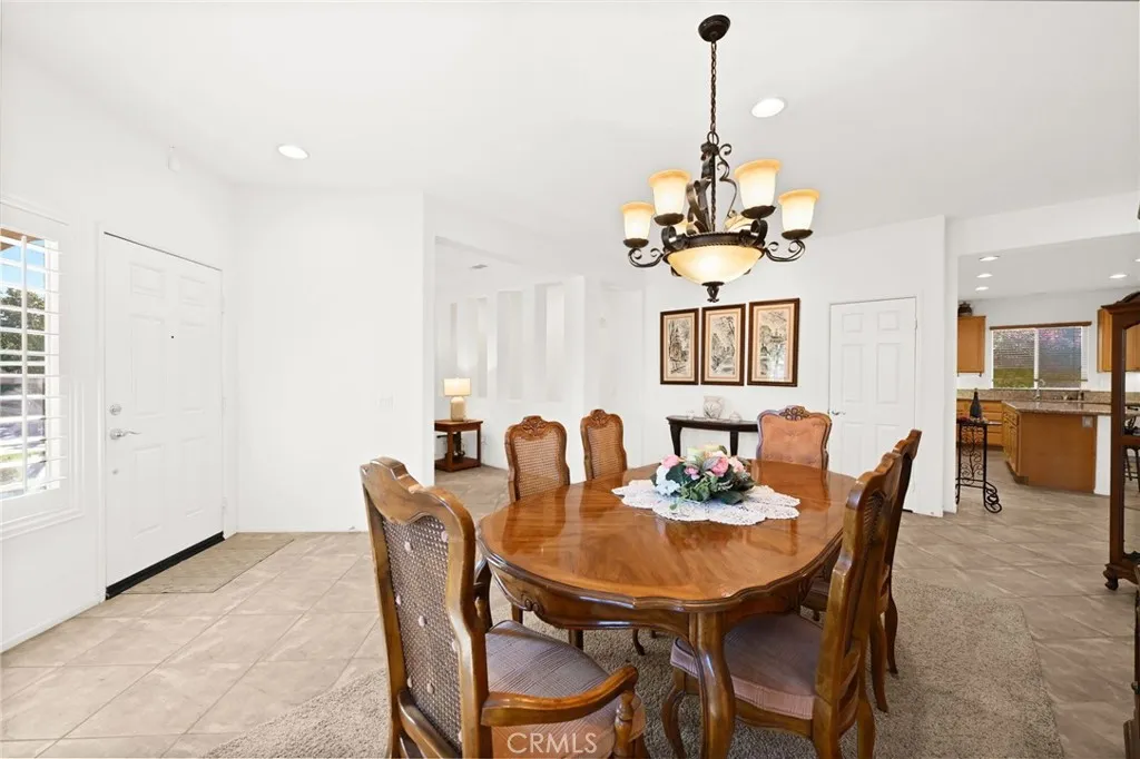Experience the Messina model in the serene 55 plus Oasis Community. This spacious single-story home offers 2 bedrooms, 2 bathrooms, and a front office within an open layout spanning 1,868 square feet. Inside, you will find beautiful diagonal tile flooring and a well-appointed kitchen featuring granite countertops, a stylish backsplash, and under-cabinet lighting. The kitchen opens to a generous family room that includes a surround sound speaker system, a fireplace, and a slider leading to the backyard with a patio cover and landscaped yard. This model also includes a den that can easily be converted into a third bedroom if needed. The primary bedroom is generously sized and offers a large en suite bathroom with a soaking tub, walk-in shower, and walk-in closet. The oversized two-car garage includes a dedicated golf cart space, which can be used for parking, a workshop, or a hobby area. As a resident of the Oasis Community, you will enjoy access to a wide variety of activities and clubs. The 22,500 square foot clubhouse features a ballroom, exercise facility, billiards room, swimming pool, tennis courts, library, card room, ping pong, shuffleboard, and more. Conveniently located near shopping, dining, and everyday conveniences, this home offers comfort, functionality, and an active lifestyle. Bonus: Low taxes and no Mello Roos.
