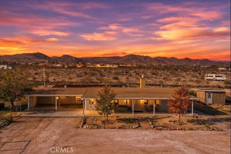 Welcome to 1998 Cambria Avenue in Landers, a spacious two-bedroom (with 3rd optional room), two-bath home set on a full five-acre lot with unforgettable sunrises over Goat Mountainthe owners favorite way to start the day. The property features laminate and tile flooring throughout and new dual-pane windows that bring in natural light and capture beautiful desert views. The first bedroom includes a walk-in closet and a mini-split system for efficient heating and cooling. The kitchen offers stainless steel appliances and marble countertops, flowing into a dining area with an open-beam ceiling that adds character and warmth. The primary bedroom also has a mini-split, along with a walk-in shower and an adjacent laundry area with a toilet for added convenience. Outside, the expansive acreage showcases classic Landers charm with mature desert foliage and open space ideal for recreation and relaxation. Just moments away from iconic local attractions such as Giant Rock, King of the Hammers, and other area landmarks, this property captures the unique appeal that draws so many to Landers.