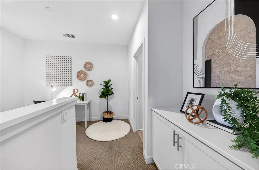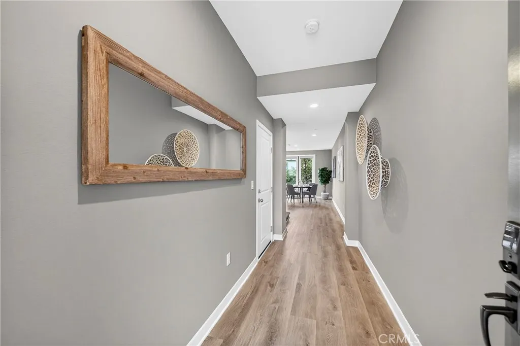 Wow! Welcome to the beautiful home located in the highly sought-after Oxford Row Community of Cypress. Built in 2017 and offering over 1,700 sq ft of thoughtfully designed living space, this home blends modern comfort with refined style. The open-concept kitchen and living area create an inviting setting for everyday living and entertaining. The kitchen features abundant cabinetry. Double doors open to a private backyard, filling the home with natural light and an airy atmosphere. 3 bedrooms, 2 bathrooms, a versatile loft with a desk area, and a separate Laundry room are conveniently located upstairs. The primary bedroom offers a full-size shower, dual vanities, a private toilet room, and two walk-in closets. Two additional bedrooms share a well-appointed full bathroom, while a powder room is conveniently located on the main level. Also, enjoy your new flooring on the main level and the fresh interior painting throughout the house. An attached two-car garage provides direct access to your house. Residents enjoy the common area, including BBQ grills, a grassy yard, and picnic areas, all complemented by a low HOA fee. This energy-efficient Green Home is surrounded by more than ten nearby parks offering basketball to tennis, walking trails, and BBQ and picnic areas. Active solar panels are included in the home. Ideally situated near the top-rated Oxford Academy, Cypress Civic Center, City Hall, Library, Police Department, and dining options, and easy access to the 91, 5, 22, and 405 Freeways, this exceptional home offers both elegance and convenience.