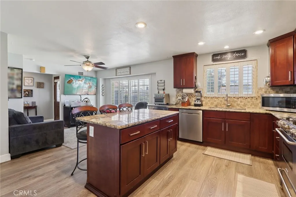 Welcome to your dream home in Upland, perfectly situated near top-rated schools and within an awesome community! This upgraded residence boasts a blend of modern amenities and stylish finishes, making it ideal for families and individuals alike. As you step through the inviting front door, you'll immediately notice the abundance of natural light streaming through the double-pane windows, adorned with elegant plantation shutters throughout the house. The upgraded flooring flows seamlessly from room to room, creating a cohesive and welcoming atmosphere. The heart of the home, the kitchen, has been beautifully remodeled with new cabinets, a stunning backsplash, and sleek countertops, complemented by a charming farmhouse sink. Every plumbing fixture is new, ensuring functionality and style. The living spaces are enhanced by stylish light fixtures and ceiling fans, providing comfort and elegance. Retreat to the totally remodeled master bathroom, a true oasis featuring modern finishes and a luxurious feel. The guest bathroom offers glass shower doors and a spa-like tub equipped with jetsperfect for unwinding after a long day. Both bathrooms have had exhaust and heater fans replaced for optimal comfort. *Priced to Sell* Sellers have located their home! This home also features a tankless water heater and has undergone significant upgrades to its heating and cooling systems, including replaced ducts and a new air conditioning and heating unit, with an attic fan for added efficiency. The attic insulation has been removed and replaced, ensuring energy efficiency year-round. Major plum