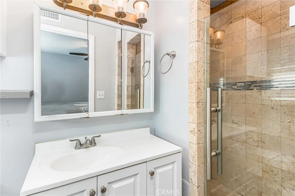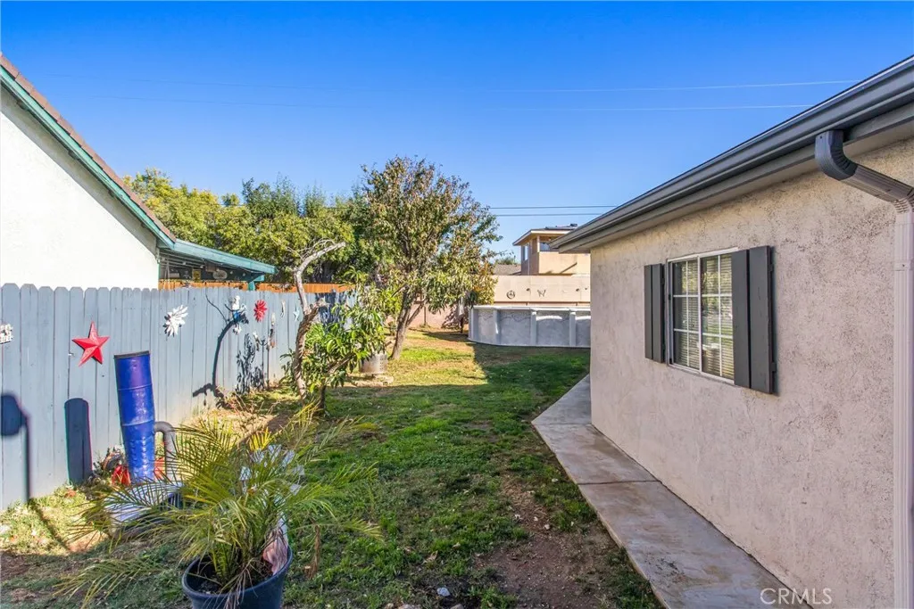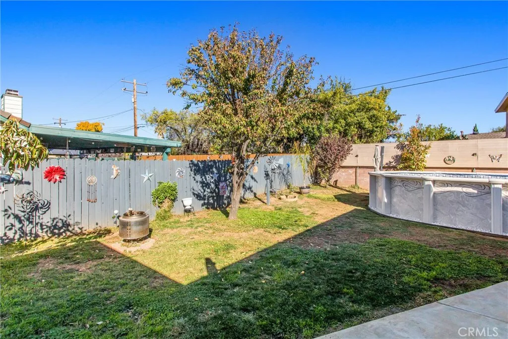Welcome to this beautifully maintained 3 bedroom, 2 bathroom home, featuring a range of recent updates including interior and exterior paint, as well as a newer HVAC system. The spacious living room features a stunning custom entertainment wall complete with a mantle and a built-in electric fireplace, perfect for cozy evenings. Both the kitchen and bathrooms have been remodeled, enhancing their functionality and style. The dining area is enhanced with custom cabinets, and recessed LED lighting brightens most areas of the home. Adjacent to the dining room is a bonus room equipped with mirrored closets and its own private rear entrance, and is connected to the HVAC system. This additional space can serve as a 4th bedroom, gym, or office. The property has a large driveway measuring 13' x 130', fully paved and offering RV access to the back, complete with hookups, with excellent curb appeal. Step outside to a backyard designed for relaxation and entertaining, featuring various fruit trees and a newly installed professional grade Doughboy Saratoga above ground pool. Additionally, a workshop/storage building with both internal and external power outlets and lighting adds convenience to the space. The garage and breezeway are finished with epoxy flooring. Nestled in a well-established neighborhood, this home is ready for you to move in and make it your own.