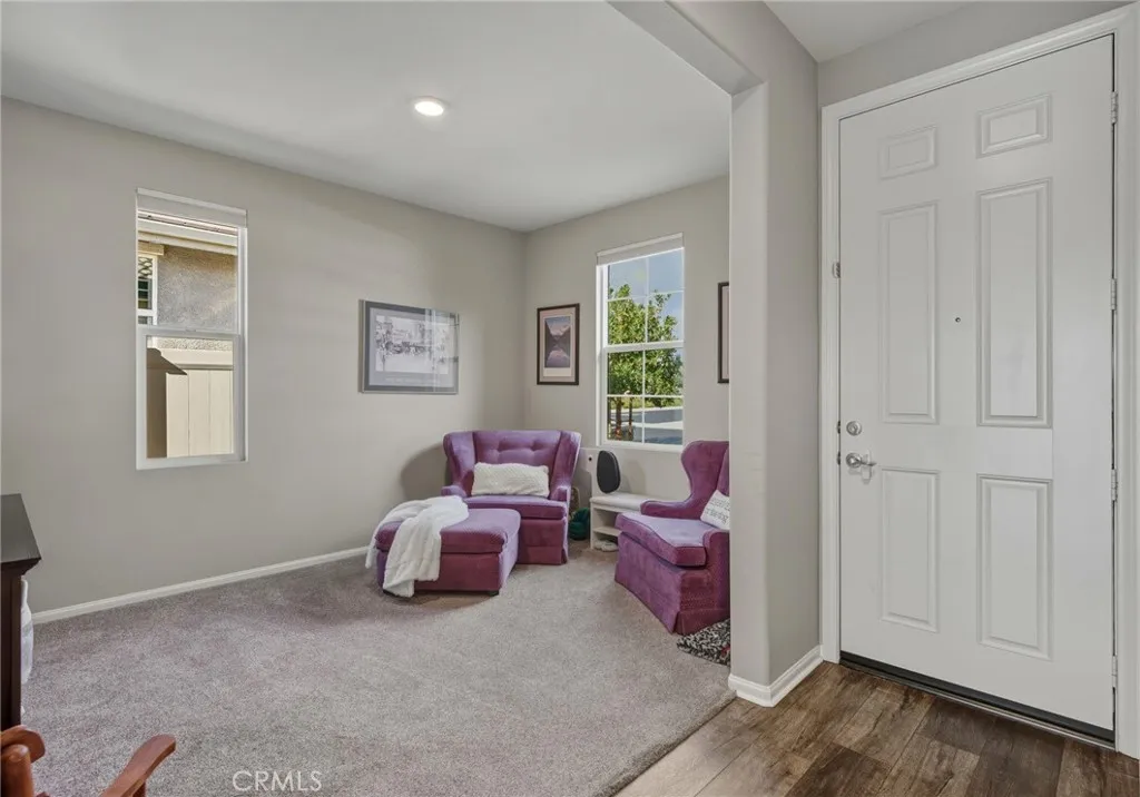 Stunning is the word I use to describe this "Retreat" Model Home. Welcome to Location, Location, Location. Nestled in on a quiet cul-de-sac street this home has amazing views of the neighborhood, hills and mountains. Built in 2019 this home has had a beautiful REDO with a gorgeous new countertop - its Cambria quartz - unique and a standout. Located in the gorgeous 55+ Community of Four Seasons in Beaumont! Offering 2 bedrooms + den/office, 2 bathrooms, laundry room and 1,592 square feet of thoughtfully designed living space, this home is ideal for those seeking style and convenience in a vibrant active adult community. Step into the heart of the homean impressive kitchen featuring white cabinetry, stunning quartz countertops, stainless steel appliances, and a large center island with sink. The inviting dining area flows effortlessly into a bright and open great room, filled with natural light from abundant windows. Enjoy beautiful flooring in the foyer, kitchen, great room, and bathrooms, complemented by soft carpeting in the bedrooms and den. A spacious walk-in pantry adds plenty of storage, and the home is equipped with energy-efficient upgrades including a tankless water heater and fire sprinkler system. Outside, the low-maintenance landscaping with a custom $25,000 backyard offers privacy, views and a firepit. The backyard is a sanctuary with no neighbors directly behind you and stunning views. Solar system runs $68 pr month keeping your electric bill to a credit or possibly approximately $10 per month or several times a year a credit. Resort-Style Living at Its Best Fo