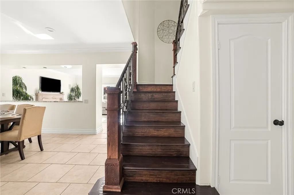 Exceptional elegance defines this custom pool home nestled in one of Rancho Cucamongas most prestigious neighborhoods. Offering approximately 3,487 sq. ft. of living space, this elegant residence was crafted with exceptional attention to detail and quality finishes throughout. The stunning curb appeal is enhanced by beautifully manicured landscaping, fragrant rose bushes, and intricate paver work that lead to striking wrought iron double doors. Inside, youll find an inviting floor plan filled with natural light, rounded corners, crown molding, high ceilings, and timeless tile flooring. The formal living and dining rooms are ideal for entertaining, while granite pony walls define the spaces without sacrificing the open feel. At the heart of the home is a true chefs kitchen showcasing an expansive island with exotic granite, custom soft-close cabinetry, and premium stainless steel appliancesall included. Highlights include a built-in refrigerator and freezer, commercial-grade range with pot filler, warming drawer, trash compactor, and walk-in pantry. The adjacent family room offers a stately fireplace and built-in speakers, creating a warm yet sophisticated gathering space. The first floor also features a private guest bedroom and a full bath with a walk-in shower, plus a well-appointed laundry room with ample cabinetry and a prep sink. A graceful wrap-around staircase leads to the second level, where a spacious bonus room and private balcony capture gorgeous mountain views. The luxurious primary suite is a true retreat with its own balcony overlooking the backyard, a spa-ins