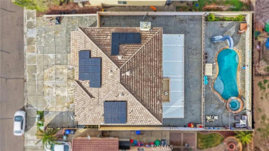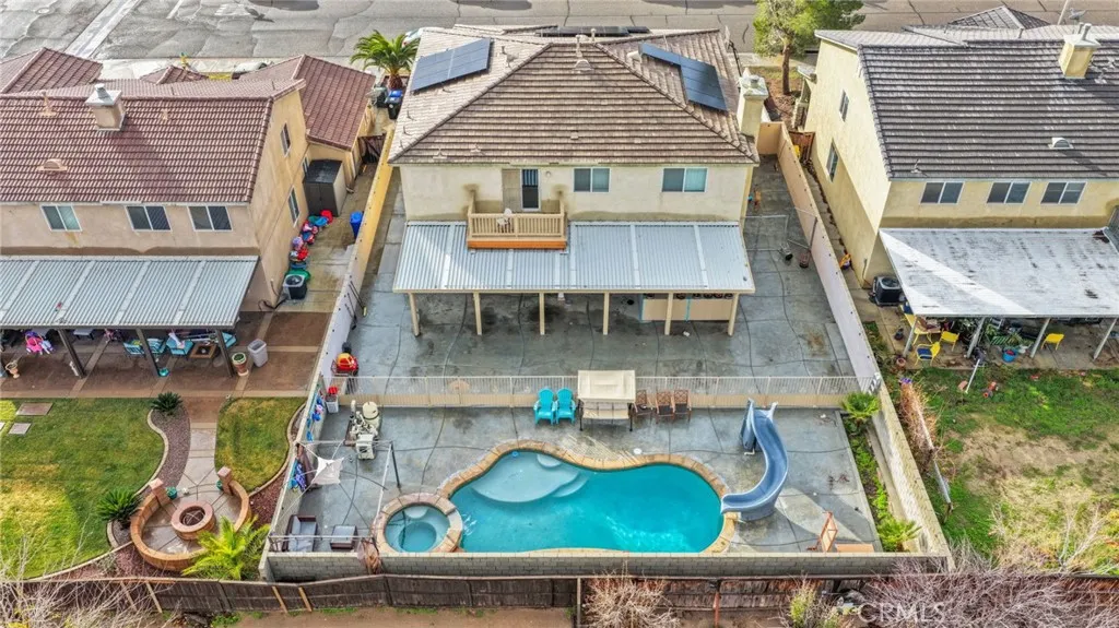 Beautifully Updated Pool & Spa Home with Two Primary Suites! This spacious and well-maintained home offers a wonderful blend of comfort, functionality, and inviting living spaces. Featuring separate formal living and family rooms, the layout is ideal for both everyday living and entertaining. The family room includes a built-in bar and opens to the recently remodeled kitchen, creating a great flow for gatherings. The updated kitchen features new quartz countertops, new cabinetry, a stylish backsplash, a center island, stainless steel appliances, recessed lighting, and a large pantry. A downstairs bedroom and full bathroom provide a convenient space for guests or extended family, along with a separate laundry room. Upstairs youll find four additional bedrooms, including two primary suites. The first primary suite offers a spacious bedroom, an updated bathroom, and a large walk-in closet that was originally a sixth bedroom and could be converted back if desired. Bedrooms three and four are generously sized and share a newly remodeled Jack-and-Jill bathroom with double sinks and a tiled walk-in shower. The second primary suite is oversized and includes a private balcony, a large ensuite bathroom with an extended shower, dual sinks, and a walk-in closet. The front yard offers extended concrete for additional parking. The backyard is designed for easy outdoor enjoyment with stamped concrete throughout, a brick wall, an extended covered patio, and a bar area. Enjoy the saltwater pool with waterslide and jacuzziperfect for relaxing or entertaining. Additional features include a le