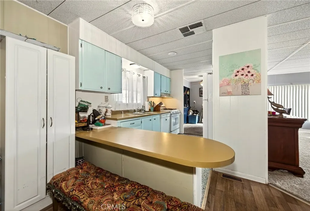 Affordable living, thoughtful upgrades, and scenic views come together in this well-kept home located in the Linda Vista 55+ community with a reasonable monthly space rent of $575. Welcome to this well-cared-for 1968 mobile home. This home has been refreshed with updated baseboards, interior paint, upgraded lighting, and a ceiling fan, creating a bright and inviting feel. The kitchen features a convenient breakfast bar, and there is ample storage, perfect for everyday living. Featuring 2 beds/2baths, allowing flexibility for hobbies, guests, or a home office. Youll appreciate the spacious main bedroom with a private bathroom featuring a walk-in shower, generous closet space, and vanity area. Perfect for ageing in place. Recent improvements include a new swamp cooler, new A/C, and select dual-pane windows, enhancing comfort and efficiency. The home is neat, clean, and move-in ready, with a washer and dryer included for added convenience.