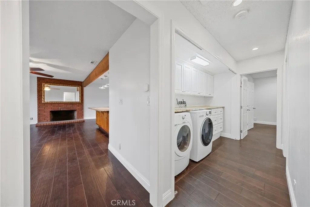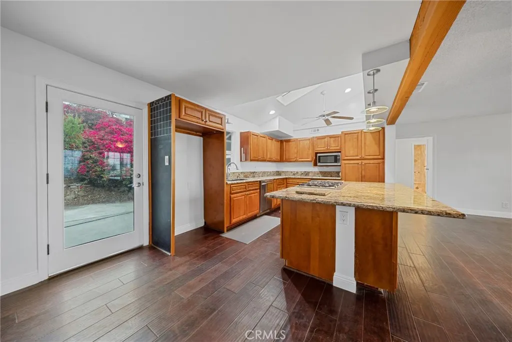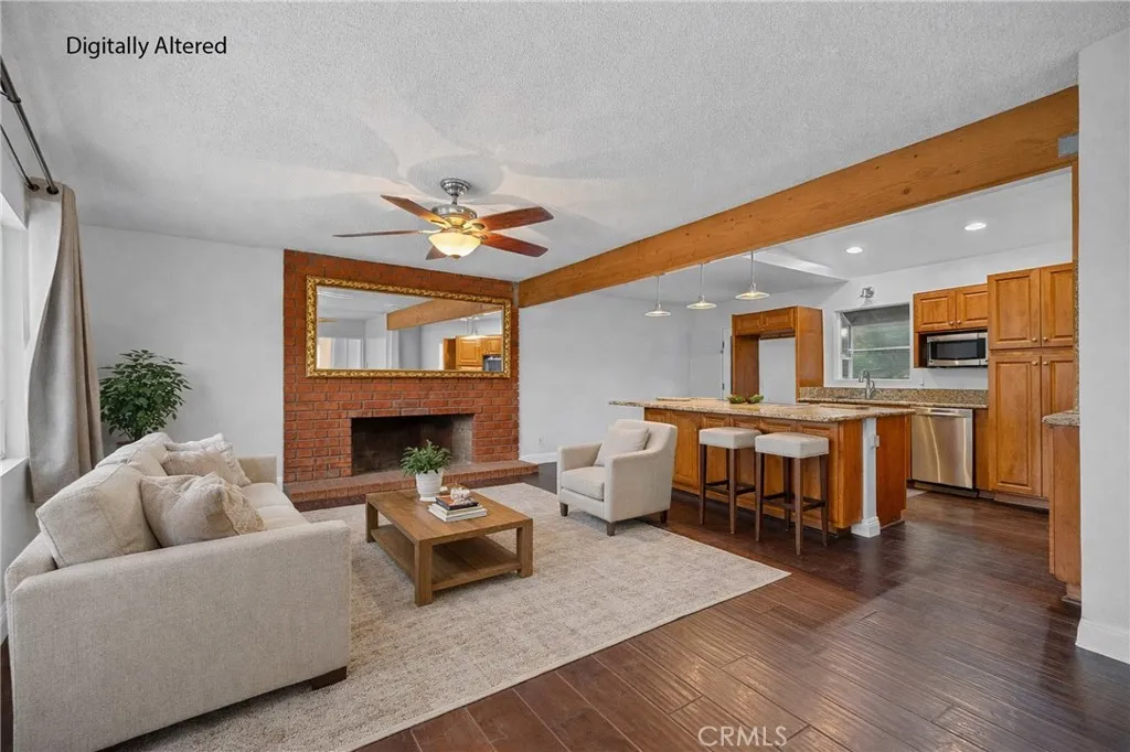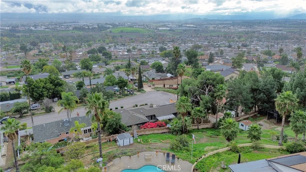 Welcome to this beautifully maintained and move in ready single story home tucked away on a quiet cul de sac in Jurupa Valley. Offering 3 bedrooms, 2 bathrooms and 1,855 square feet of comfortable living space on a large 10,019 sq ft lot. Originally built in 1960, the home has been thoughtfully updated over the last decade, including all new paint on the interior and exterior, blending mid century character with modern convenience. From the moment you arrive, you'll notice the excellent curb appeal and pride of ownership. Step inside to find wood flooring throughout and a bright, open layout thats perfect for both daily living and entertaining. The kitchen has a vaulted ceiling with a skylight, granite countertops, and lots of cabinetry ideal for any home chef. The adjacent living and family rooms each feature a large cozy brick fireplace, creating a warm ambiance for gatherings or relaxing evenings at home. Both bathrooms have been stylishly updated, with the hall bathroom also enhanced by a skylight that fills the space with natural light. Energy efficient dual pane windows, central heating & air, and a solar panel system keeps the interior comfortable year-round while helping to reduce utility costs. Indoor laundry with storage and lots of counter space adds everyday convenience. Outside, your own private backyard oasis awaits with artificial grass throughout the yard. The large backyard is ideal for entertaining, featuring a large covered patio for weekend barbecues and an above-ground hot tub for relaxing under the stars. Enjoy panoramic city views from the front yard,