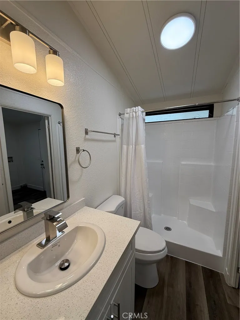 Discover this beautiful newly remodeled 1986 home. This charming property offers 2 bedrooms, 2 bathrooms approximately 1344 of living sq/ft . You'll greeted with brand new laminated flooring when enter. Kitchen equips with brand new stainless steel refrigerator, dishwasher, stove and microwave, brand new quart countertop and brand new white cabinets. Big windows in living room to welcome in natural lights. Brand new carpet in 2 bedrooms. Both bathrooms are replaced with brand new quart countertop, cabinets, toilet and standing/tub shower. Spacious side porch. Shed and central AC included. Senior community with low monthly space rent of $722.