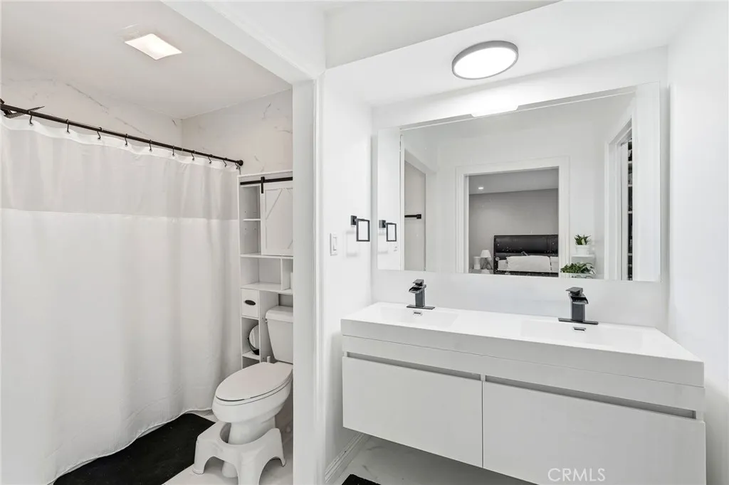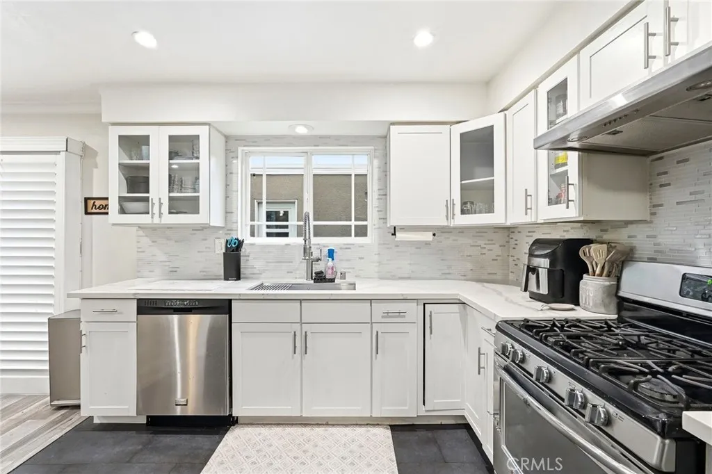 Welcome to this beautifully renovated, move-in ready 2 bedroom, 2.5 bath townhome in the highly desirable Devonshire Village. Expertly renovated throughout, this home blends modern design with functional living. The light-filled living room features wide windows with custom wood shutters, recessed lighting, upgraded gray laminate flooring, wet bar, and a fireplace, flowing seamlessly into the dining area perfect for entertaining. The spacious kitchen boasts quartz countertops, a modern backsplash, glass-front cabinetry, and stainless steel appliances, ideal for cooking and gatherings. Upstairs, enjoy two spacious primary suites, each with generous walk-in closets. The primary suite showcases a fully renovated bathroom with a floating his-and-hers sink, a filtered soft water shower with tub, and marble tile. The second suite offers its own private bathroom with a walk-in shower and ample closet space. A guest half bath is conveniently located on the main level. In-unit laundry, a direct-access two-car garage, and a private patio with TV's hookups perfect for entertaining, morning coffee, outdoor dining, or relaxing evenings. Resort-style amenities including two sparkling pools, a spa, and beautifully landscaped grounds. Perfectly located near CSUN, shopping, dining, freeway access, and the highly regarded Granada Hills Charter High School, this exceptional townhome combines modern upgrades, comfort, and an unbeatable community lifestyle. Priced to sale! A true turnkey opportunity, dont miss it!