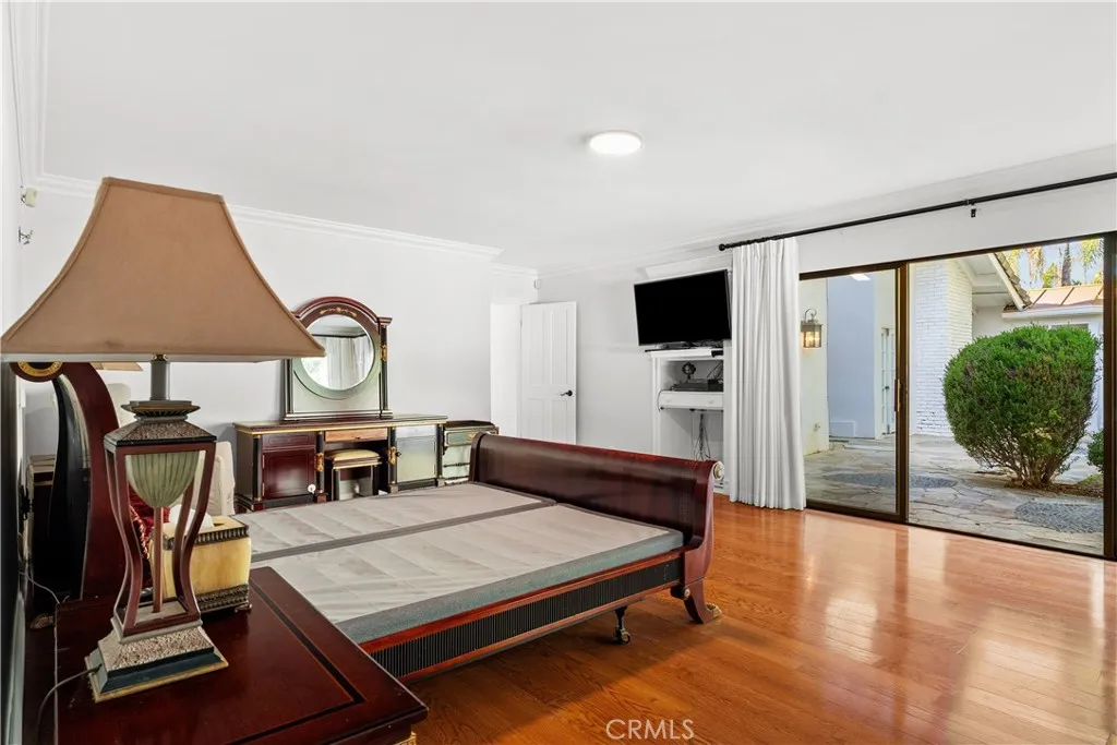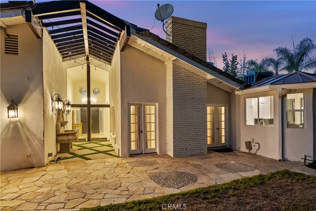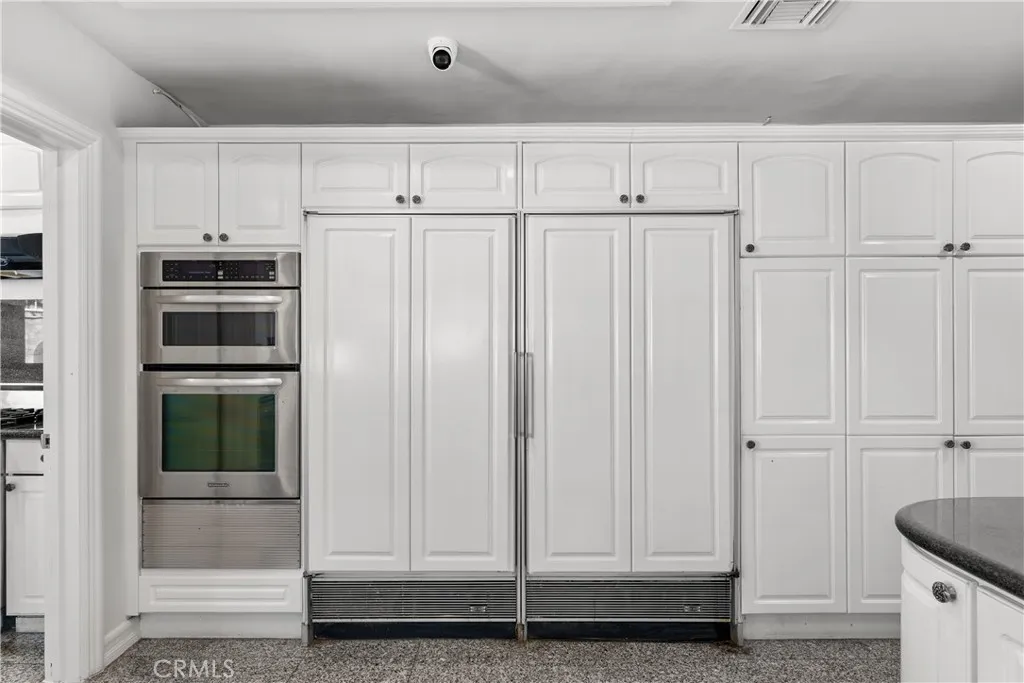 A Perfect 10! This stunning single-story entertainers estate boasts an impressive 188 feet of frontage and exquisite upgrades throughout. Step inside to find marble floors with intricate inlaid mosaic detailing, designer faux finishes, elegantly updated bathrooms, custom doors and windows, and stone fireplaces that create an atmosphere of luxury and warmth. The home offers two full kitchens featuring top-of-the-line cabinetry and premium appliances, perfect for hosting or multi-generational living. The expansive primary wing includes a sitting area, walk-in closets, and a spa-like bath. Additional highlights include designer draperies, a newer roof, copper plumbing, and maids quarters conveniently located off the three-car garage. Step outside to a resort-style backyard where no expense was sparedfeaturing a custom pool with glass enclosure, three cascading waterfalls, and a bridge leading to the built-in BBQ area and elevated viewing terrace. The lush, manicured grounds include a large grassy area ideal for entertaining or relaxation. Truly a one-of-a-kind property where luxury, craftsmanship, and comfort come together. You must see it to fully appreciate the detail and design!