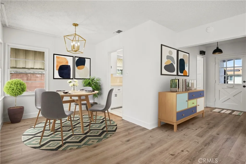 9530 Rives Ave, Downey Beautifully Updated and Move-In Ready Home! Welcome to this charming 3-bedroom, 1-bath home offering fresh updates and thoughtful improvements throughout. Enjoy fresh interior and exterior paint, beautiful laminate flooring, and new light fixtures that give the home a bright, modern feel. The expansive living room features a cozy fireplace and flows seamlessly to the patio and backyard, creating an ideal space for indoor-outdoor living. A charming dining area is highlighted by a brand-new hanging light fixture, perfect for everyday meals or entertaining. The galley kitchen offers recessed lighting, a new stainless steel stove and dishwasher, and a delightful vintage swing door that adds character. Just off the kitchen is a dedicated laundry room with washer and dryer hookups and ample cabinetry for storage. All bedrooms are generously sized with ample closet space, while the full bathroom features dual sinks. Additional upgrades include a brand-new ducting and heating system, ensuring comfort year-round. Step outside to a welcoming patio and newly landscaped yard, complete with new sprinkler and drip systems for easy maintenance. The front and sides of the home have also been upgraded with new irrigation systems and a timer for effortless care. The property includes central air and heat, a 2-car detached garage with a brand-new door, and a long driveway providing additional parking. Centrally located near golf courses, park, schools, shopping, restaurants, and grocery markets, this home offers easy access to the 710, 5, 605, and 105 freewaysconvenien