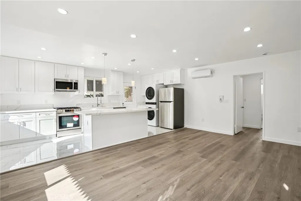 Experience refined, executive-style living in this fully renovated 1-bedroom, 1-bath residence in the heart of Altadena. Meticulously redesigned from the ground up, this sophisticated 750 sq. ft. apartment offers the rare opportunity to be the very first to live in the space! Step inside to an expansive open floor plan that blends living, dining, and kitchen areas into a seamless, modern environment. The centerpiece is a stunning, oversized kitchen island that anchors the room perfect for entertaining, working from home, or enjoying a quiet meal. The large, chef-inspired kitchen features brand-new appliances, generous counter space, and abundant cabinetry, creating a true culinary hub. Every detail reflects quality and intention: new luxury flooring, fresh designer paint, and clean architectural lines throughout. Comfort is elevated with a new, energy-efficient split AC system providing personalized climate control year-round! Behind the walls, the home has been comprehensively upgraded with new electrical, plumbing, and wiring offering peace of mind and the reliability expected in a luxury residence. The bathroom and bedroom are thoughtfully designed to maximize both style and functionality, providing a calm, retreat-like ambiance. Set in desirable Altadena, this residence delivers executive-level comfort, contemporary finishes, and a polished, modern aesthetic all in a turnkey, first-occupancy home. This is not just an apartment; it is a high-end living experience crafted for those who value design, quality, and sophistication!