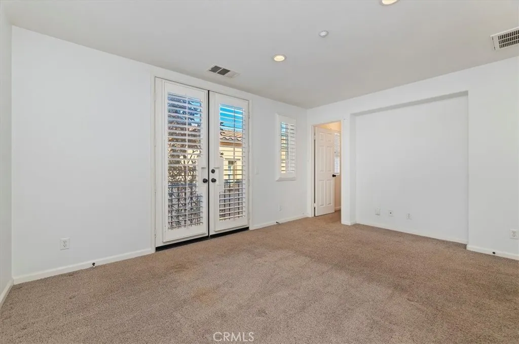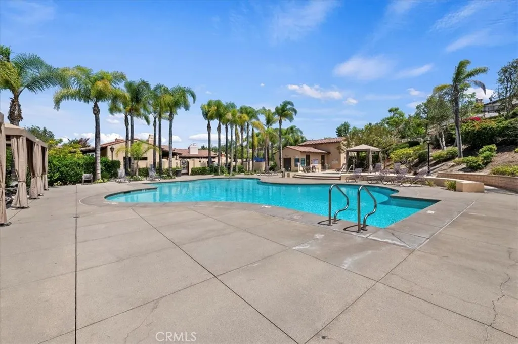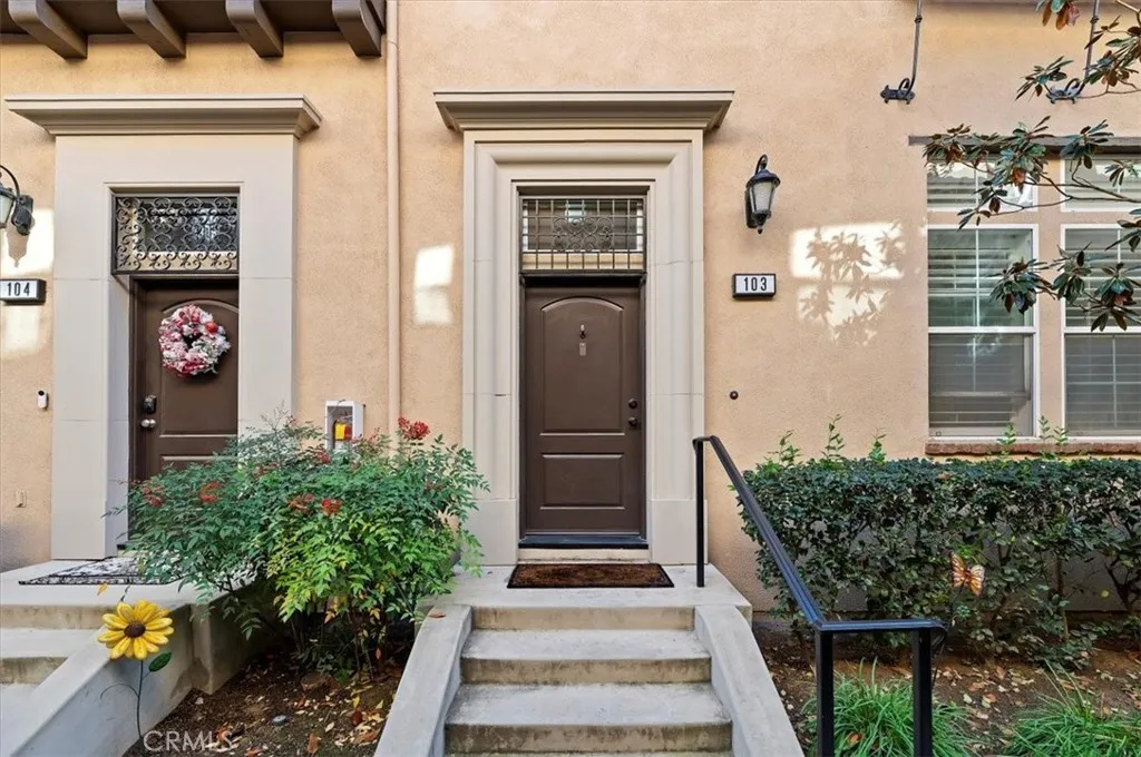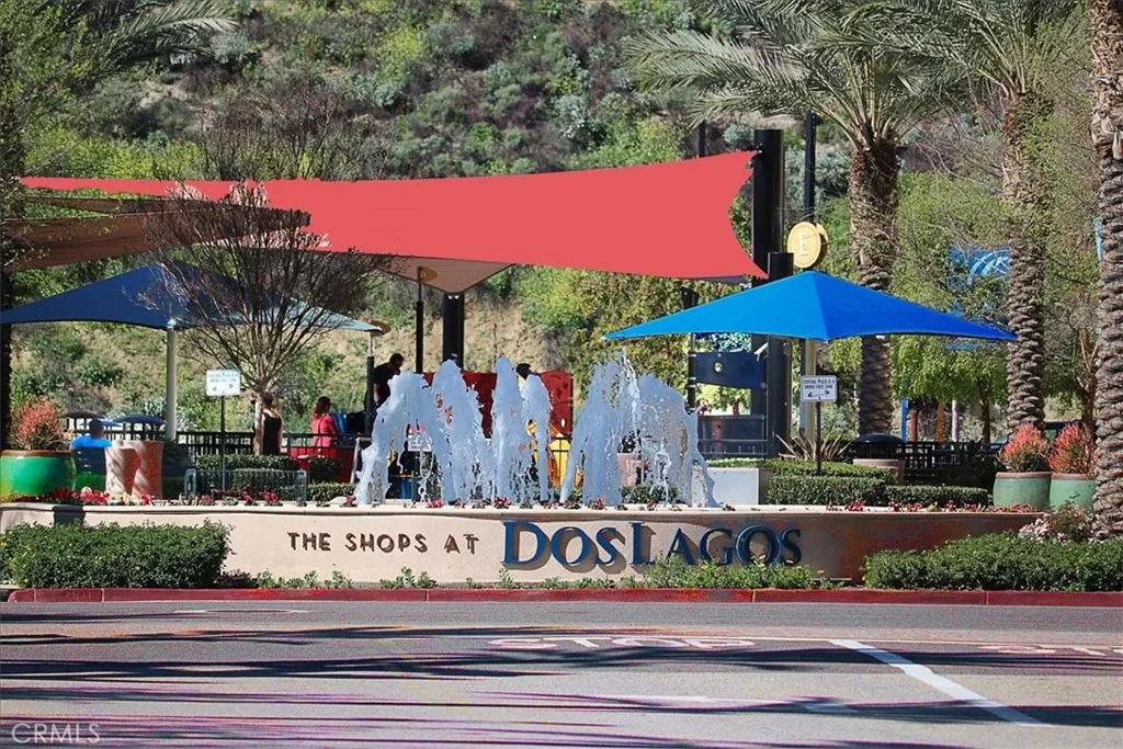 Enjoy the sought-after Dos Lagos lifestylejust steps from shops, restaurants, theaters, nightlife, and summer concerts at the stadium. This beautiful home is located in an intimate gated community of only 125 residences, featuring a resort-style pool, spa, and cabanas. The gorgeous interior welcomes you with a dramatic entry and soaring 14-foot ceilings, leading to a step-down living room filled with natural light. The granite island kitchen is equipped with GE stainless steel appliances, white cabinetry, under-cabinet accent lighting, and a pantry. Plantation shutters, upgraded baseboards, a Nest thermostat, and a soft-water system add comfort and style throughout. Enjoy a cozy deck off the dining area, perfect for relaxing or entertaining. The primary suite features French doors opening to a charming Juliet balcony, a walk-in closet, and a private bath. Convenient upstairs laundry completes the thoughtful floor plan. Offering approximately 1,775 square feet of living space, this home includes three bedrooms, three bathrooms, was built in 2009, and features a two-car garage with an oversized storage area. Located within the desirable Santiago High School district. A fantastic home in an unbeatable location.