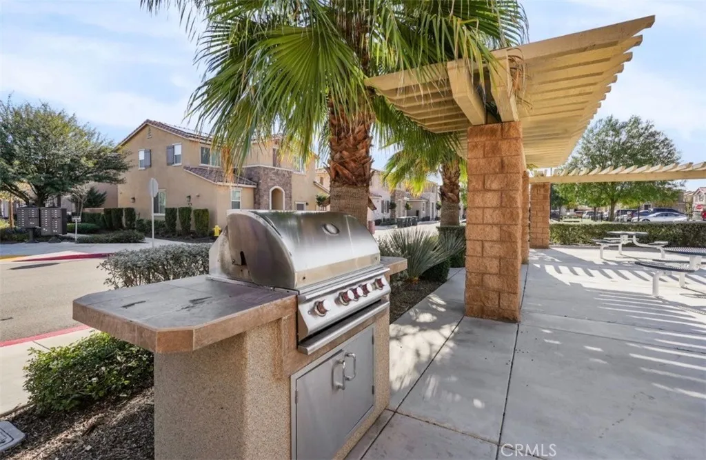 Welcome to this beautifully maintained three-bedroom, two-and-a-half bath home, built in 2022, and located in a desirable gated community in Perris. The open-concept kitchen features white cabinetry, quartz countertops, and stainless-steel appliances, seamlessly flowing into the main living areaperfect for everyday living and entertaining. The spacious primary suite offers a relaxing retreat with a walk-in shower and dual sinks. Additional highlights include an indoor laundry room, attached garage, and owned/leased solar for energy efficiency. Residents enjoy resort-style community amenities, including a pool and spa, park, clubhouse, and outdoor cooking and barbecue areas. This newer home offers comfort, convenience, and a wonderful community lifestyledont miss this opportunity!