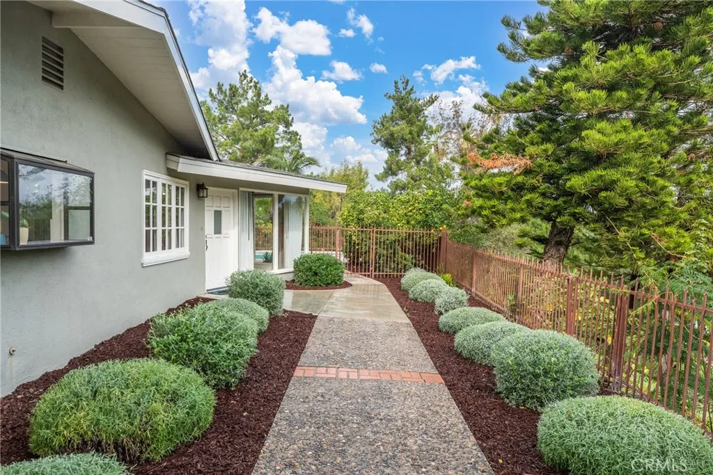 Beautifully renovated 3-bedroom, 3-bathroom home offering 2,370 square feet of thoughtfully upgraded living space on a private and fully usable 1.1-acre lot with a swimming pool, mature landscaping, and an expansive orchard. This turnkey property combines modern upgrades, luxury finishes, and indoor-outdoor living, making it ideal for those seeking space, privacy, and move-in-ready condition. The interior features wide-plank engineered hardwood flooring throughout the main living areas, new designer lighting, solid-core interior and closet doors, upgraded hardware, and custom drapery in the main living spaces and primary bedroom. Bedrooms feature new stain- and water-resistant carpet, offering durability and comfort. The upgraded kitchen includes KitchenAid appliances, custom soft-close cabinetry, and quartz countertops, providing a clean, functional space for cooking and entertaining. Bathrooms have been remodeled with high-end finishes. The primary bathroom features porcelain tile, a luxurious soaker tub, quartz countertops, custom soft-close cabinetry, updated plumbing fixtures, and modern lighting. The secondary bathroom has also been remodeled with new cabinetry, tile, mirror, lighting, toilet, and plumbing fixtures, creating a cohesive and updated feel throughout the home. Major system upgrades include a new roof, new fascia, new electrical panel, new water heater, new chimney cap, fresh exterior paint, and a new variable-speed pool pump. The entire 1.1-acre property has been professionally cleared and fire-abated, including removal of underbrush and trees near the ho