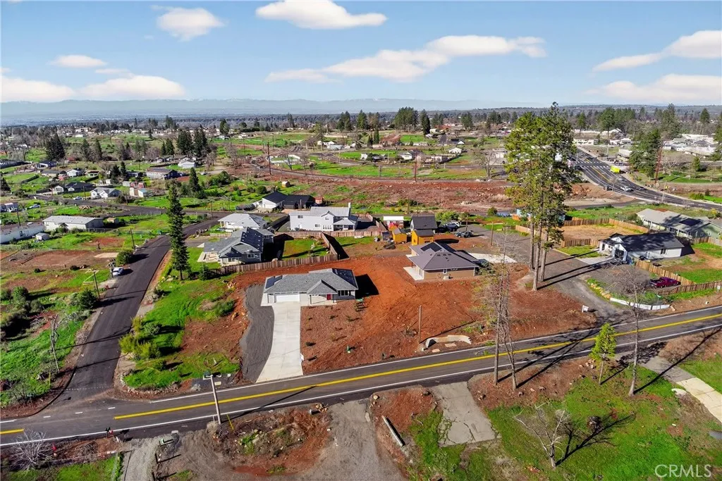 Fantastic Central Paradise location for this 2025 Custom Home, built by Frost Construction a long time Paradise builder. Current Insurance Quote $1,044.70 NO FAIR PLAN! The home offers Owned Solar 3.08 KW system, 7 panels with microinverters. Enjoy the proximity to the Paradise train park where on Wednesdays in the summer there is live music and activities. The .32 Acre lot offers space for Boat, Trailer or R.V. parking with electricity. Landscaped front yard on drip system. Boasting a generous 1,021 square feet of living space, this home features top-notch craftsmanship and modern amenities. Upon entering, you'll be greeted by a charming 96 square foot covered front porch with a craftsman-style front door and custom shutters. Step inside to discover an open floor plan that seamlessly connects the living room, kitchen, and dining area. The kitchen is a chef's dream with granite countertops, stainless steel appliances, recessed LED and pendant lighting, and a stylish island for added convenience. The primary bedroom is a serene retreat with crown molding, a slider leading to the covered patio, and a well-appointed en-suite bathroom featuring granite counters and a step-in shower. The guest bedroom also offers crown molding and access to a sleek guest bathroom with granite countertops and a tub/shower combination. The home features gorgeous Vinyl Plank flooring throughout. Outside, you'll find a spacious 114 square foot covered patio with recessed lighting and a ceiling fan, perfect for outdoor entertaining. Additionally, the oversized two-car garage, measuring 23'5" wide by