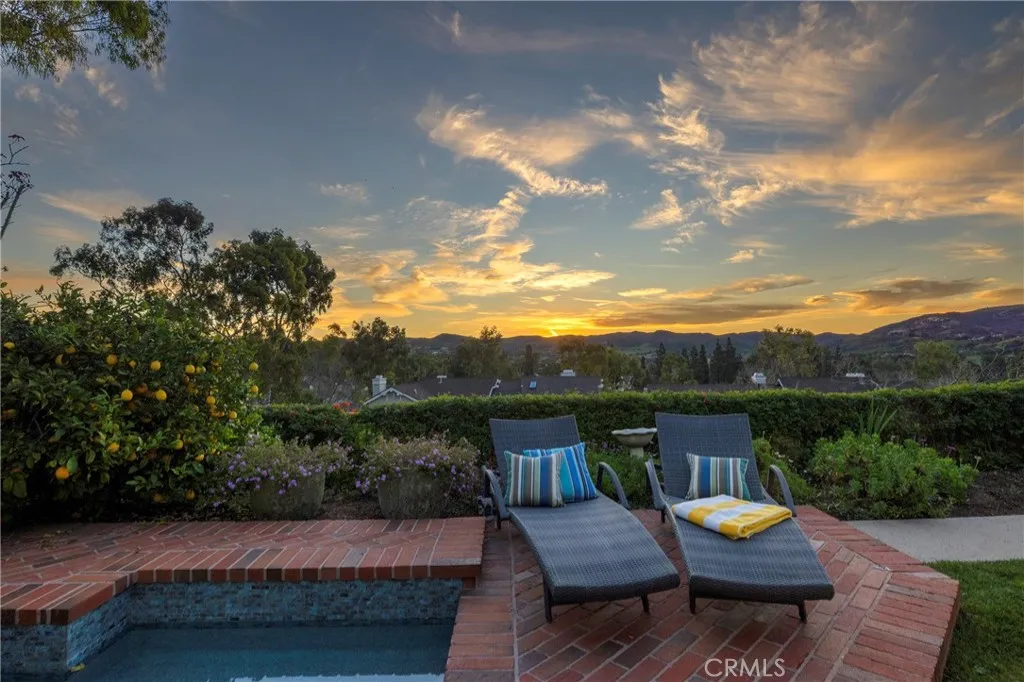 View, View, View. This single level home is located on the top cul-de-sac street in Turtle Rock Highlands Garden homes. On a prime elevated lot this home provides panoramic views over Bommer and Shady canyons. The perfect home for someone to make their own, many upgrades have already been completed. The living and dining room floors are finished in recently installed Duval European White Oak; the windows are graced with plantation shutters and recessed lighting provides illumination. The primary suite has remote controlled recessed lighting and a remodeled bath. The interior has been freshly painted, and new baseboards were installed throughout. A recent hot water heater is assisted by solar power. Dual pane windows and sliders are in place throughout. The backyard is graced with a brick patio with a recently refreshed relaxing saltwater spa and inspiring views. There is a bright atrium bringing sunlight into the secondary bedrooms. The kitchen opens to the family room. It is fully functional but substantially original awaiting your designer touch. Enjoy the quiet and serenity of the Turtle Rock hills while centrally located to all of Orange County amenities. Low association fees provide a beautiful pool/spa area, slope maintenance and extensive green belts. Just minutes from beautiful beaches, transportation, world class shopping and dining and top-rated schools including University High and UCI.