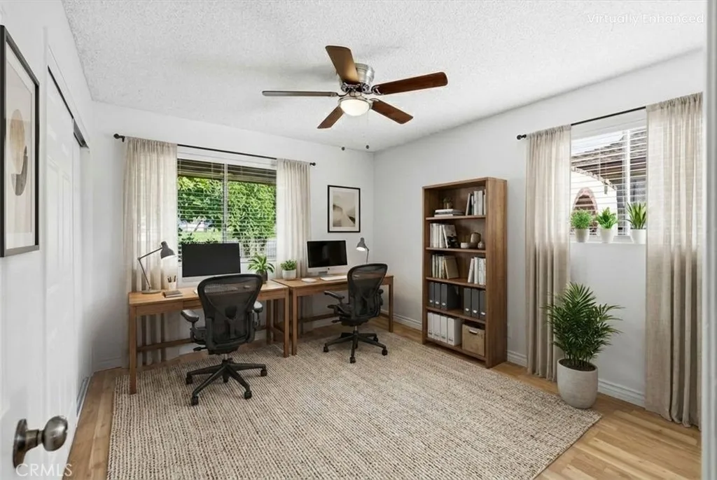 PRICE IMPROVEMENT!! This well-maintained, move-in-ready home offers excellent curb appeal with a welcoming covered front porch and thoughtful updates throughout. The interior features new flooring, fresh interior paint, new window blinds, ceiling fans throughout, a brand-new HVAC system, and a new water heater. The generous living room is warm and inviting, highlighted by a cozy brick fireplace with a custom mantleperfect for relaxing or entertaining. The spacious, updated kitchen offers ample cabinetry and updated appliances, providing both functionality and style. Step outside to beautifully landscaped grounds with a variety of mature fruit trees. The large backyard offers RV access and an impressive 32' x 22' (approx) workshop/building with 10-foot high ceilings, electricity, and an attached side carportideal for hobbyists, storage, additional workspace or an ADU. Located within the highly desirable Charter Oak School District, this home combines pride of ownership, modern updates, and versatile outdoor space. A rare opportunitydont miss it!