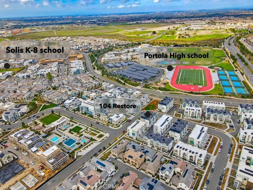 MOTIVATED SELLERS!!! 2 BEDROOM + OFFICE FLEX SPACE in a prime location!!! Located within Irvines Great Park community, this contemporary three-level home offers a flexible layout and a clean, modern aesthetic throughout. Updated flooring spans all levels and outdoor space, creating a cohesive and polished feel. Part of the new desirable Mulberry Collection in Solis Park, the property is only steps away from Portola High school and Solis K-8 school. The first level features a versatile entry-level flex space ideal for a home office, den, or bonus room, along with access to a patio. This level also includes a dedicated storage room and a side-by-side two-car garage with additional storage and an EV charger. The second level serves as the main living area, featuring an open-concept kitchen, dining, and living space enhanced by recessed lighting and updated flooring. The kitchen is finished with white shaker cabinetry, stone countertops, and a large island. A balcony extends the living space outdoors, and a convenient powder bathroom completes this level. On the third floor are two bedrooms, each with its own ensuite upgraded bathroom. One bedroom includes a walk-in closet, while the primary suite features a spacious walk-in closet, dual-sink vanity, updated finishes, and access to a private balcony. The double stack laundry is conveniently located on the same floor as the bedrooms. Located in the heart of Orange County Great Park with acess to resort-style amentites including parks. Residents enjoy pools, fitness center, tennis and basketball courts, clubrooms and BBQ areas. M
