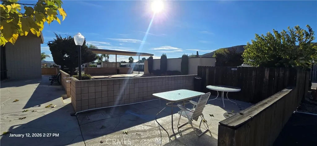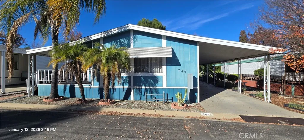 (Unit 247) Great opportunity in this affordable home located in the highly desirable 55+ Community of "Hillside Mobile Home Estates" in Menifee/Sun City! Featuring an open floor plan with high ceilings, laminate wood floors throughout, spacious living room, step saving kitchen with plenty of cabinet & counter space, dining room with built in hutch/cabinets, indoor laundry room, primary bedroom w/separate tub + shower, good size secondary bedroom & full bathroom, and yes this property has central AC & Heat! There's also a large front porch area and ample room for parking in the carport, and a storage shed! Small backyard area has a few fruit trees too! Community amenities included a beautiful clubhouse with kitchen, billiards rooms, lounge area, shuffleboard, and a gated pool too! Great location convenient to freeways, shopping, and restaurants!