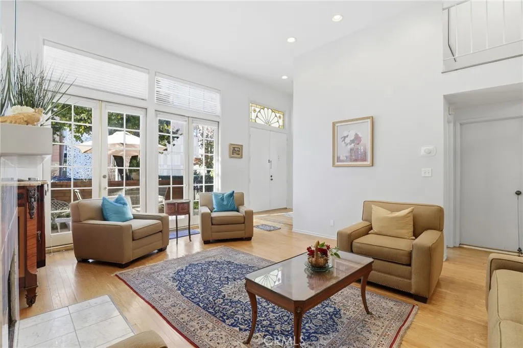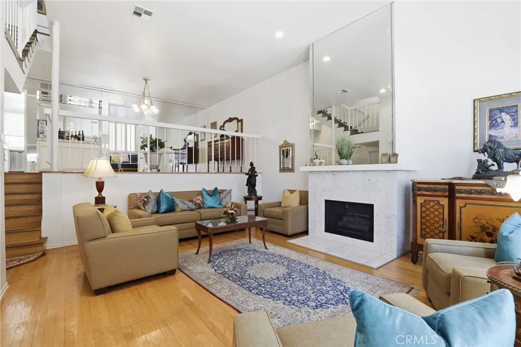 "Price Improvement" Welcome to Unit #7 at The Lindbrook, a sun-filled multi-level townhome ideally located in the heart of Encino. Bathed in natural light from the front of the residence, this beautifully maintained home welcomes you through a grand double-door entry accented by custom stained-glass transoms, opening to a dramatic living space with soaring vaulted ceilings and gleaming hardwood floors. The open and sophisticated layout is highlighted by a stately white marble fireplace and a striking floor-to-ceiling mirrored wall, creating an airy and expansive atmosphere. French doors extend the living area to a private brick-walled patio, offering a seamless indoor-outdoor flow ideal for entertaining. An elevated built-in wet bar further enhances the homes functionality and charm. Upstairs, the primary suite serves as a peaceful retreat, featuring French doors that open to a private balcony with scenic views of the surrounding hills and mountains. Additional highlights include an attached two-car garage with direct access and a secure, gated setting. Residents enjoy resort-style amenities including a pool, spa, and sauna. Low HOA dues add exceptional value and include earthquake insurance, water, and trash. The community is pet-friendly and well maintained. Ideally situated just moments from Ventura Boulevards shopping and dining, including Restaurant Row, Trader Joes, and Lake Balboa Park. The home is also conveniently located near multiple houses of worship and everyday neighborhood amenities, with easy access to the 101 and 405 freeways. A rare opportunity to enjoy li