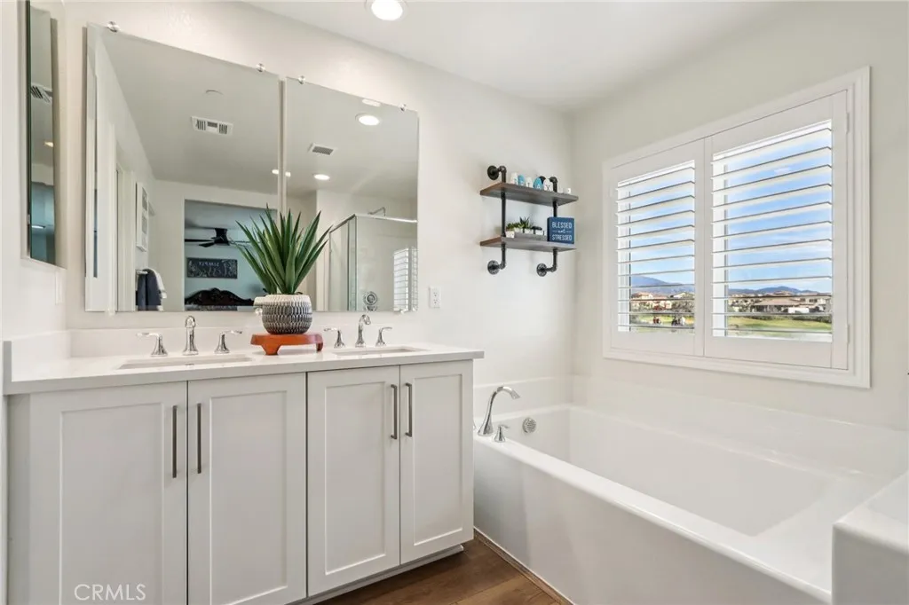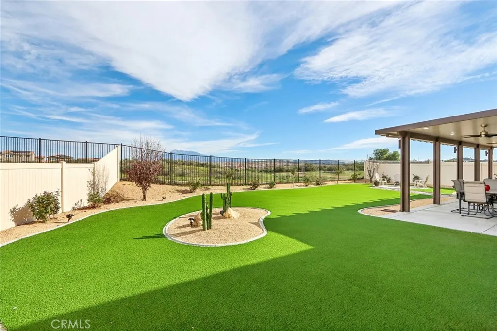 Welcome to The Fairway Community, where you can experience modern resort-style living at its finest. This breathtaking premium corner lot home sits on an expansive 7,815 sq. ft. lot overlooking The Legends GOLF COURSE with stunning MOUNTAIN VIEWSa rare find in todays competitive real estate market. Properties in this sought-after neighborhood consistently trend above average for both appreciation and desirability, making this an exceptional investment opportunity as well as a dream residence. The exterior features self-maintaining landscaping, including turf, decorative rocks, vinyl fencing, and drought-tolerant plantings, ensuring both excellent curb appeal and easy upkeep. The outdoor space is perfect for year-round entertaining, featuring an Alumawood patio cover with recessed lighting, ceiling fans, TV, and a dedicated BBQ and dining areaideal for hosting gatherings or relaxing with loved ones while enjoying the scenic backdrop. Inside, youll find a bright, open 2,239 sq. ft. floor plan with four spacious bedrooms and three full bathrooms. A convenient main-floor bedroom and bath provide an ideal space for guests or multi-generational living. The chefs kitchen is a showstopper, featuring white cabinetry, stainless steel appliances, quartz countertops, and a large island with designer pendant lighting and extra seating. Upstairs, a large loft offers flexible additional living space, while a well-appointed laundry room with extra storage adds everyday convenience. The spacious master suite offers picturesque views, a large walk-in closet, and a luxurious bathroom featurin