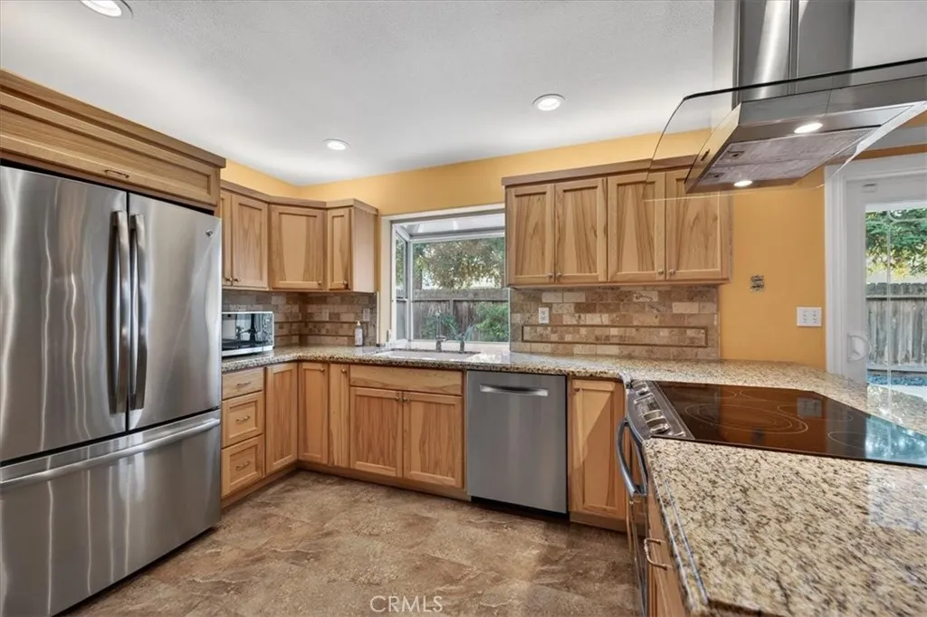 Tired of high-maintenance yards and homes that feel like more work than enjoyment? Many properties promise outdoor space but deliver constant upkeep and little character. 1881 Frederick Avenue offers a different experience. This beautifully maintained home showcases clear pride of ownership with a spacious floor plan featuring a vaulted-ceiling living room, a large family room/den with a cozy fireplace and built-in shelving, and a centrally located kitchen designed for everyday living and entertaining. Anlin windows throughout the home enhance comfort and energy efficiency, while a built-in wine fridge adds a refined touch to the kitchen space. A garden window with an automatic awning brings in natural light while maintaining comfort and control. Thoughtfully designed drought-tolerant landscaping in both the front and back creates a strong visual impact without the hassle, highlighted by red bark accents and a simulated stone riverbed that immediately sets this property apart. The backyard is a low-maintenance retreat designed to be enjoyed. A covered pergola provides shaded outdoor space, a water fountain creates a relaxing atmosphere for morning coffee or evening unwinding, and two raised garden beds make this a true green-thumb haven. Located within the highly desirable Clovis North High School area, this home balances design, ease, and atmosphere. A must-see to fully appreciate. Pictures (40)