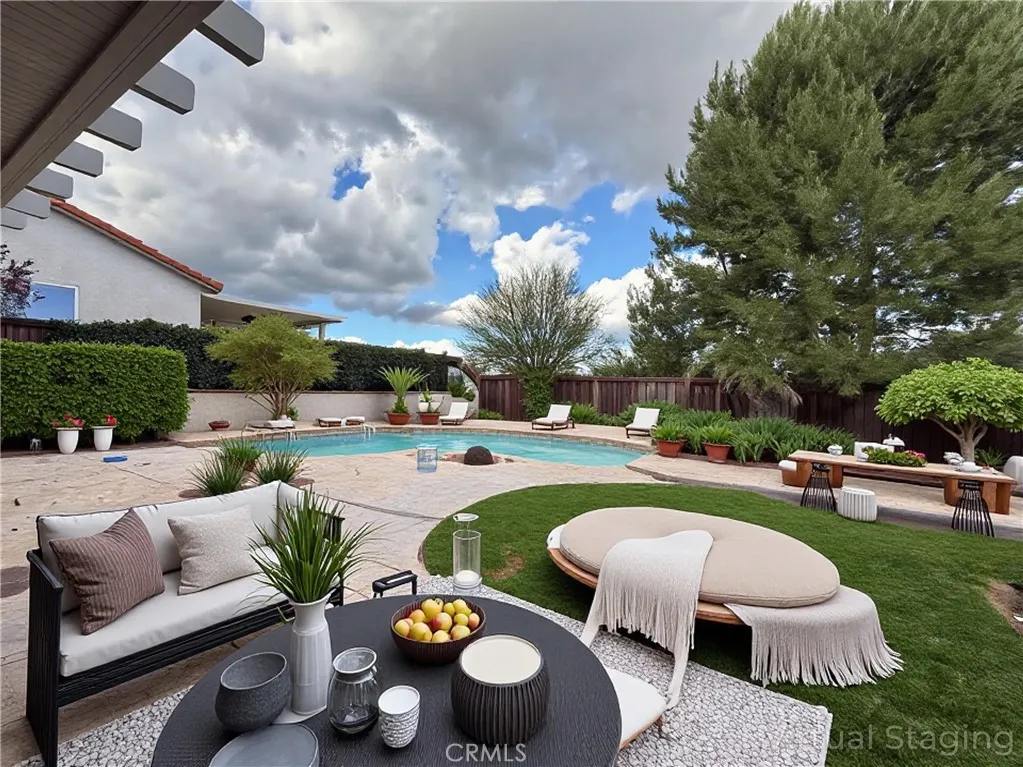 Welcome Home to 35430 Azalea Circle the Lucky One Youve Been Waiting For! Nestled on a peaceful cul-de-sac in the heart of Winchester, this stunning Transitional-style residence offers the perfect blend of comfort, elegance, and modern living. Step through the double-door entry into soaring vaulted ceilings that grace the formal living and dining rooms. Engineered hardwood floors, plantation shutters, and abundant natural light create a warm and welcoming atmosphere throughout. This spacious 4-bedroom, 3-bathroom home of thoughtfully designed living space. The luxurious primary suite includes a private retreatideal for a home office, gym, or libraryalong with a spa-like bath featuring a walk-in shower, separate soaking tub, dual sinks, and a generous walk-in closet. Down the hall are three additional bedrooms, a full bath, and a tech nook perfect for study or workspace. The open-concept kitchen is a true centerpiece, showcasing elegant white shaker cabinets, gleaming granite countertops, stainless steel appliances, a barn sink, recessed lighting, and a sliding door that opens to the backyard. The kitchen flows seamlessly into the large family room with a cozy fireplace and granite mantelperfect for everyday living and entertaining. Step outside to your own private oasis! The expansive backyard is designed for year-round enjoyment with a sparkling pool and spa, fire pit, paved seating area, and plenty of room for BBQs and gatherings. Additional highlights include solar panels, a whole house fan, dual AC units, and ceiling fans throughout. Located with LOW taxes and HOA, and