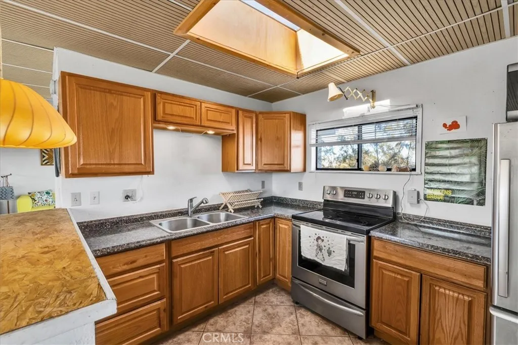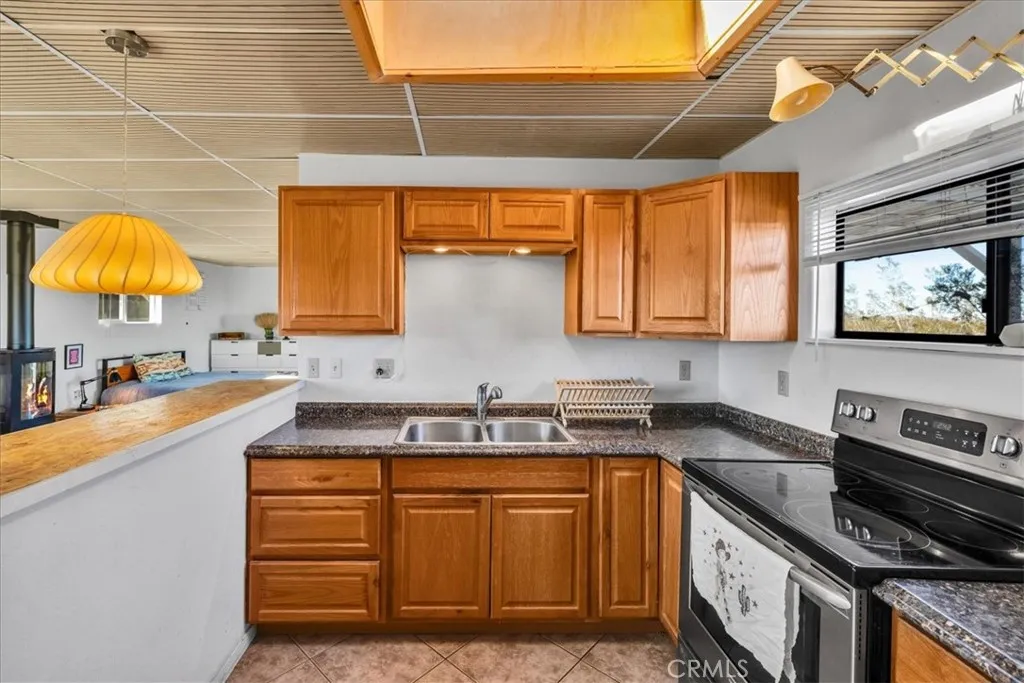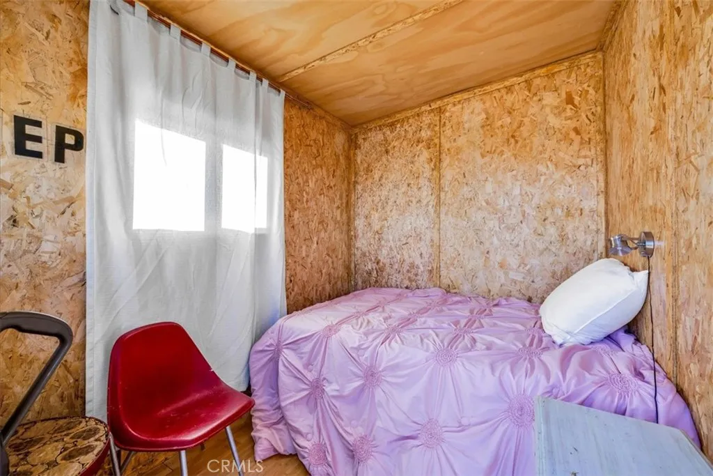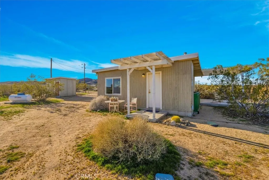Bordering protected BLM land and set on 2.5 fully fenced acres, this private desert cabin rests in wide-open stillness, where the horizon stretches uninterrupted and the quiet feels expansive. Thoughtfully updated, the 600-square-foot single-family residence blends simplicity and warmth with clean concrete floors, newer appliances, and a skylit kitchen that fills with soft desert light throughout the day. A modern Jtul woodstove anchors the living spaceperfect for cool evenings when the temperature drops and the sky turns indigo. Sliding glass doors open to a covered patio, creating an effortless connection between indoors and out, whether for morning coffee at sunrise or long dinners beneath the fading glow of dusk. An insulated 110-square-foot shed offers flexible space for a studio, workshop, or creative retreat. Sculptural cactus plantings echo the surrounding landscape, and with little light pollution, the night sky unfolds in brilliant claritydense with stars and silence. Private, peaceful, and grounded in its natural setting, this property offers the feeling of retreat while remaining just 15 minutes from the restaurants, shops, and entrance to Joshua Tree National Park. A rare balance of solitude, accessibility, and open desert beauty.