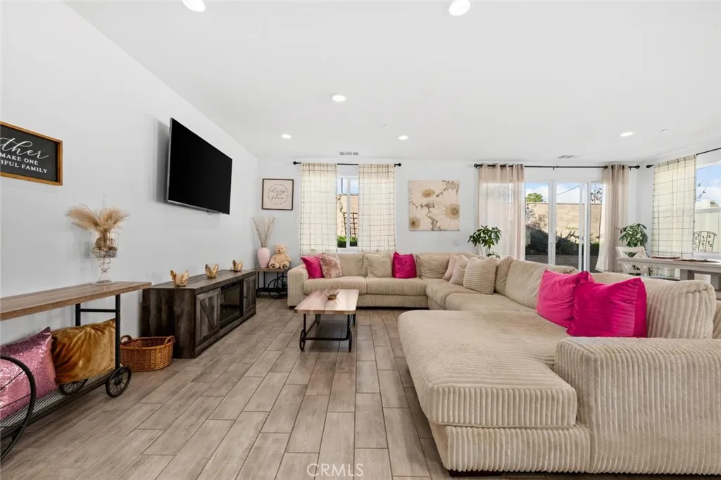 SINGLE-STORY, 4-bedroom, 3-bath newer home in the desirable Sweeny Farms community move-in ready and available now without the builder wait. This well-designed 2,082 sq ft home welcomes you with a long, high entryway that opens into a spacious great room, ideal for both everyday living and entertaining. The open-concept layout is enhanced by upgraded ceramic flooring, a stylish kitchen backsplash, quartz kitchen countertops, and modern finishes throughout. ENERGY EFFICIENT with Solar Panels, the thoughtfully designed floor plan offers flexibility for families, guests, or home offices all on one convenient level. The primary bedroom features a large walk-in closet, providing comfort and functionality. Step outside to a newly poured concrete backyard, offering a clean, low-maintenance outdoor space ready to enjoy or customize to your lifestyle. Located in the Sweeny Farms new-build community, residents enjoy access to an impressive 18,000 sq ft clubhouse and resort-style amenities, including neighborhood parks, a pool, basketball courts, fitness center, sauna, and outdoor BBQ plaza elevating everyday living with a true sense of community. Close proximity to Temecula Wine Country and Diamond Lake Valley. This home delivers the benefits of newer construction, single-story convenience, and an amenity-rich lifestyle all at an exceptional value. Come experience it for yourself today! Broker and agents do not represent or guarantee the accuracy of the square footage, income, expenses, condition, development potential, bedroom/bathroom count, lot size or lot lines, dimensions, p