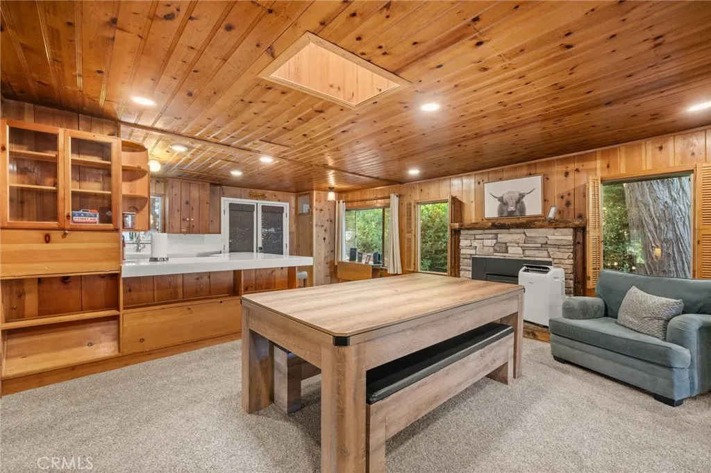 VIEWS VIEWS VIEWS!!! Cabin charm and a million dollar view! Here, mornings begin with sweeping skyline views that remind you why you chose to leave the chaotic hustle and bustle of the city behind. Property backs directly to the San Bernardino National Forest giving you additional privacy and unobstructed views. The home also has a brand-new roof and water heater. Inside, the design narrative focuses on warmth, texture, and mountain living. The heart of the home is a curated living space where built-in cabinetry and artisanal shelving frame a classic fireplace. The 2-bedroom, 3-bathroom footprint feels expansive yet intimate. The design-forward updates continue in the kitchen, where sleek new countertops provide a crisp, clean surface that complements the homes rustic soul. Sitting on a generous 8,990-square-foot lot, there's room to spread outhost a summer BBQ under the pines, build a tree fort with the kids, or simply enjoy the rare quiet that comes without sirens, car horns, or crowded sidewalks. And when youre ready for some adventure, you're minutes from Lake Gregory and Lake Arrowhead. Whether it's kayaking at sunrise, hiking nearby trails, or spending lazy afternoons by the water, this location makes weekend getaways feel like part of your everyday routine. In a world of constant noise, this cabin offers the radical luxury of disconnection. More remote than most neighborhoods in Crestline, yet still safe with neighbors near-by. Here, success isn't measured in notifications or deadlines, but in the number of sunsets you actually stop to watch and the conversations tha