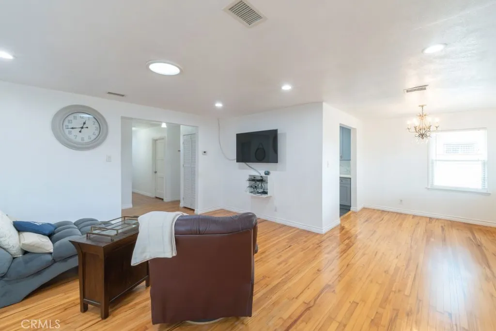 Welcome to this well-maintained and thoughtfully upgraded single-family home offering 1,526 square feet of comfortable living space in a desirable Uptown Long Beach neighborhood. As you enter, youre greeted by hardwood flooring in the living room and dining area, creating a warm and inviting atmosphere, while laminate flooring throughout the bedrooms adds durability and style. The home features a spacious primary bedroom with a walk-in closet and a private en-suite restroom, providing a true retreat. The kitchen was remodeled, offering a modern and functional layout ideal for everyday living and entertaining. Additional upgrades include dual-pane windows installed within the last three years, recessed lighting, copper plumbing, a 200-amp electrical panel, central air and heating, a tankless water heater, and a water softener system. The roof is approximately 10 years old, adding peace of mind for the next owner. For added security and convenience, security cameras are included with the sale. The backyard is a standout feature, showcasing a variety of mature fruit trees, including nectarines, avocados, Limes, pomegranates, sweet limes, and guavas, perfect for enjoying fresh fruit right at home. The property is conveniently located near shopping centers, grocery stores, and everyday essentials, with easy access to popular retailers such as Target, Home Depot, Stater Bros., and nearby shopping hubs. The area is also close to local schools, including elementary, middle, and high schools, as well as parks and major freeways, making commuting throughout Long Beach and surrounding