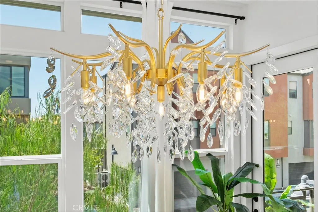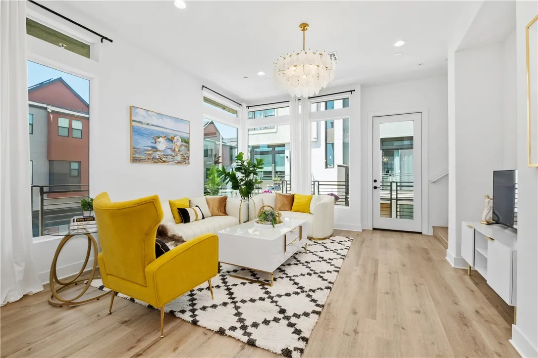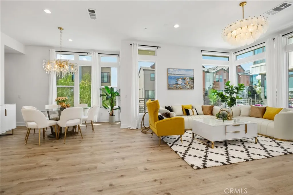 Like-New Luxury Upgraded Turnkey End-Unit Residence in Irvine Great Park NeighborhoodExceptional Value! Just Minutes Walk to top-rated Portola High School and Solis Park School (K8) in the award-winning Irvine Unified School Districtdaily drop-offs are skipped, making life a true breeze for parents. 3 beds, 2.5 baths, and 1,812 sqft of living space. Premium End Unit boasts superior natural light, enhanced privacy, a quieter setting, a larger front yard, and an L-shaped deck. The expansive Open-Concept Layout seamlessly connects the kitchen, living, and dining areas, enhanced by 10-foot ceilings to create a harmonious flow of space. Oversized windows paired with floor-to-ceiling doors bathe the interiors in abundant natural light, accentuating the homes spacious design and luxurious appeal. Tasteful upgrades include whole-house wood flooring, whole-house water softening system, and elegant chandeliers. Stunning primary bedroom suite features a walk-in closet, dual vanity, and a walk-in shower. Two secondary bedrooms are generously sized too. The first floor offers ample storage closets and direct access to a side-by-side 2-car garage. Energy-saving features include leased solar system, EV charger pre-wire, energy-efficient windows,and tankless water heater. Just minutes from Woodbury Town Center, Irvine Spectrum Center, and Kaiser Permanente, etc. Enjoy Great Parks world-class recreational amenities and the state-of-the-art sports complex, with easy access to I-5, 133, 405, and 241. Only 1825 minutes drive to Newport Beach and Laguna Beach.