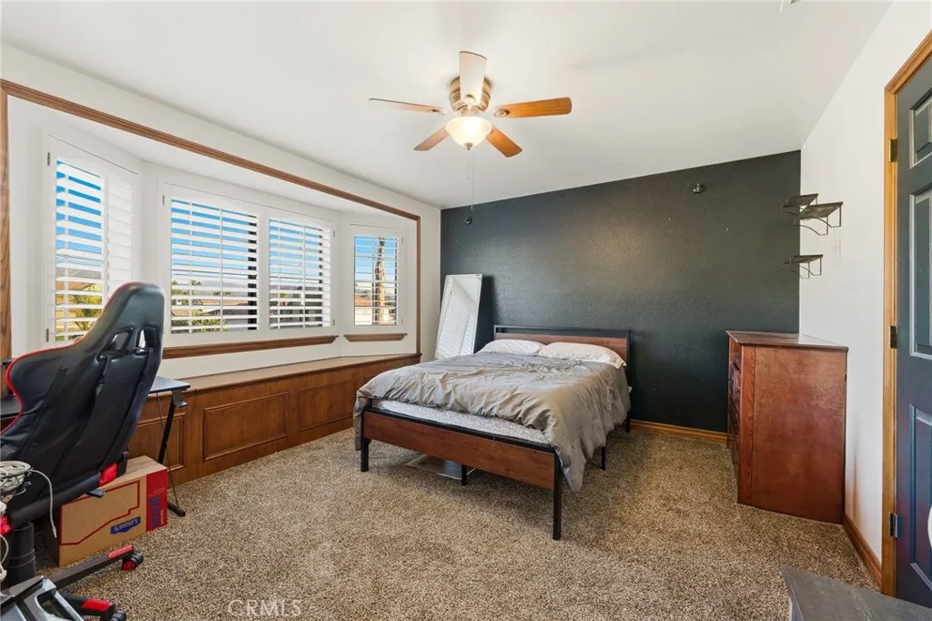 Beautiful custom home located on a large, fully landscaped cul-de-sac lot surrounded by fine properties. The gourmet kitchen features granite countertops, full backsplash, and stainless steel built-in appliances including double oven, cooktop, dishwasher, and microwave. Spacious breakfast nook with decorative etched-glass windows overlooks the rear yard. This home offers a large living room with fireplace, formal dining room, and an inviting family room with wood ceiling, second fireplace, in-ceiling surround sound, and custom French doors leading to the patio. The main level includes a private office with dedicated electrical circuit, half bath, laundry room with sink, and a bath with direct access to the backyard, pool, and garage. Upstairs features a spacious owners suite with fireplace, walk-in closet, soaking tub, and separate shower. Secondary bedrooms include a balcony with stunning sunset and mountain views, a charming window seat, and an additional front-facing bedroom. Plantation shutters and newer ceiling fans throughout. Entertainers backyard includes a covered patio, outdoor kitchen island with Fire Magic BBQ and refrigerator, heated in-ground saltwater pool and spa with waterfall, water features, and lighting. Enjoy mature fruit trees including orange, loquat, green apple, peach, Van cherry, pluerry, lemon, grapefruit, and avocado. Additional highlights include an oversized 638 sq. ft. finished side-facing garage, hard-wired internet, security system wiring prepped for cameras, and a great solar plan. Built with quality upgrades including 2x6 framing, 5/8 dry
