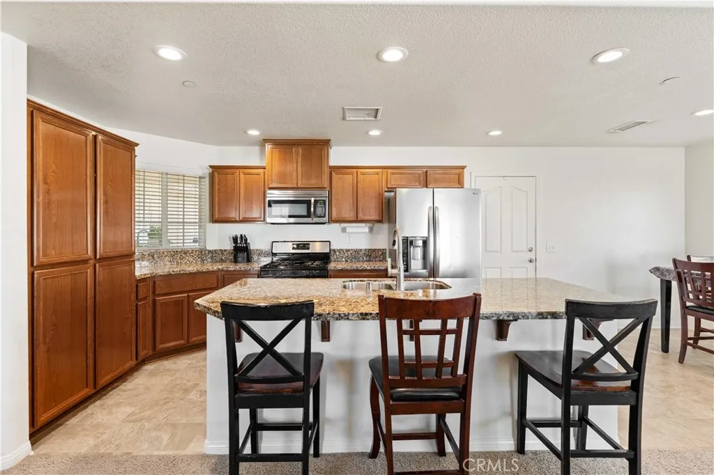 Welcome To An Absolutely Immaculate Well Maintained Home With A Nicely Laid Out Open Floor Plan!! Stunning Kitchen With Stainless-Steel Appliances Surrounded With Granite Countertops, Lots of Excellent Cabinetry For All Your Storage Needs and Room Enough For A Dining Area. Center Island Features Dual Stainless-Steel Sinks, Breakfast Bar That Opens To A large Family Room And Cozy Fireplace. Spacious Bedrooms, Primary Bedroom Includes Full Bathroom With Spacious Oval Tub And Separate Walk-In Shower, Good Sized Laundry Room, Roomy Two Car Garage, Owned Solar - NO LEASE PAYMENTS - Just LOW SCE Bills, And Much More...Must See To Appreciate!!!