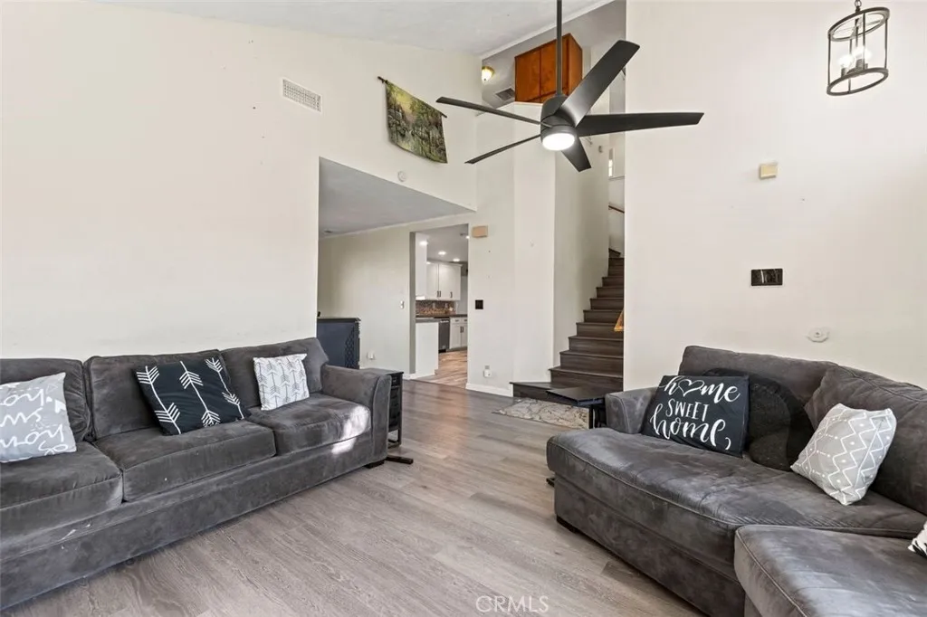 Stunning pool and spa home at the end of a cul de sac, step into your formal living room with vaulted ceilings and newer wood style laminate flooring, and a freestanding fireplace, formal dining area, step into your fully remodeled kitchen with custom cabinets and counters, stainless steel appliances, attached to a den addition with fireplace #2, WOW so cool, the backyard is a oasis, pool, spa and imitation grass so green all year and no water needed, indoor laundry, half bath down and 4 bedroom and two bathrooms upstairs with a balcony, newer AC, SOLAR buyer to assume the existing lease. This home is a winner run don't walk.