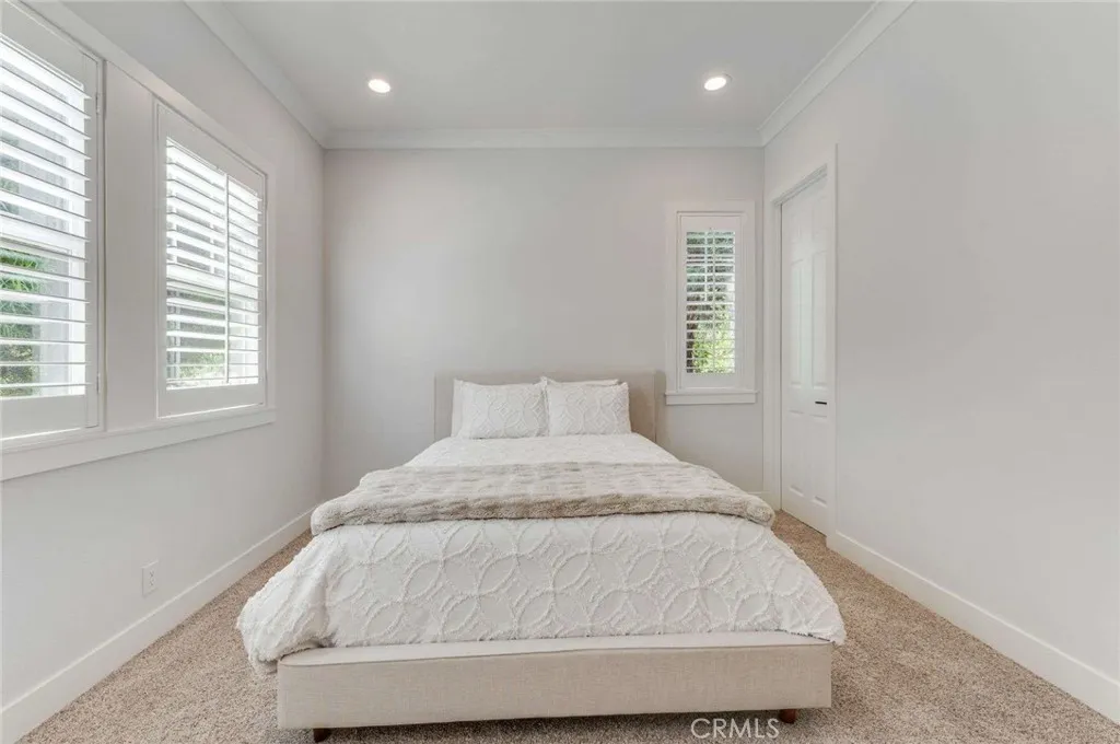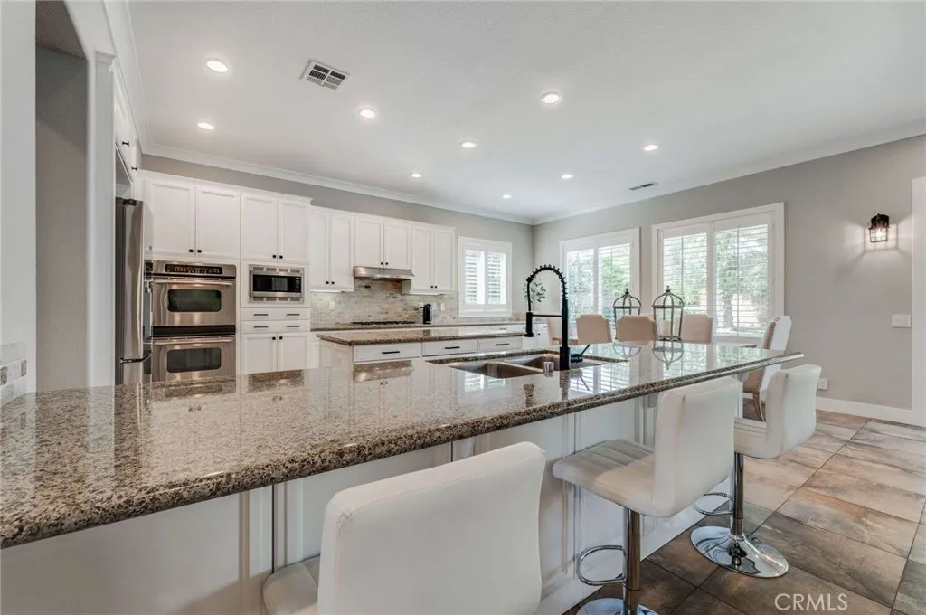 Beautifully Updated 3 Bedroom, 2.5 bath, 2965 sq ft single story on over 1/3 of an acre corner lot tucked away in a very private area of Corona. Walking into the home it opens up to a large family room / kitchen with custom millwork, custom built in surround sound also includes TV, security system, camera system and shutters. Huge open kitchen, stainless steel appliances, large peninsula, Island and granite countertops perfect for entertaining. Off to the right side of the home is a huge primary suite boosting custom millwork with coffered ceilings, crown moulding, oversized base, shutters also includes a TV. Primary has large his/her walking closets plus a separate shower / tub and dual sink vanity. There is also access to an adjoining room through a hidden pocket door off the primary bedroom currently being used as a nursery which also features custom millwork, shutters & barn door. This room can be utilized in so many ways, possible extension of the primary or future 4 bedroom. The balance of the bedrooms and bathroom are on the opposite side of the home which has the same upgraded millwork finish as the rest of the home. Large three car attached garage with access thru the laundry room just past the main 1/2 bath. This is a must see!!!!.