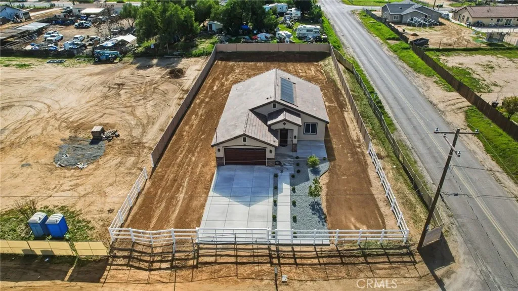Welcome to this Gorgeous New Construction Home. Modern Custom Built, Home features 3-bedroom,2-bath and 1,597 sqft of living space. Situated on a large 0.31-acre lot. The home features a nice kitchen with Quartz countertops, a nice pantry and plenty of cabinets. a center island, ideal for cooking and Entertaining. Stainless steel appliances. Laundry room is conveniently located inside the home. Paid-off solar panels provide energy efficiency and savings. Well-sized bedrooms and a generous lot offer both comfort and flexibility. Theres no HOA fees. Close to the 215 freeway and to Perris Lake. this is beautifully designed waiting for you!!