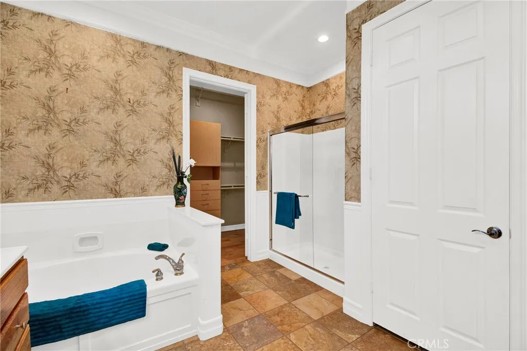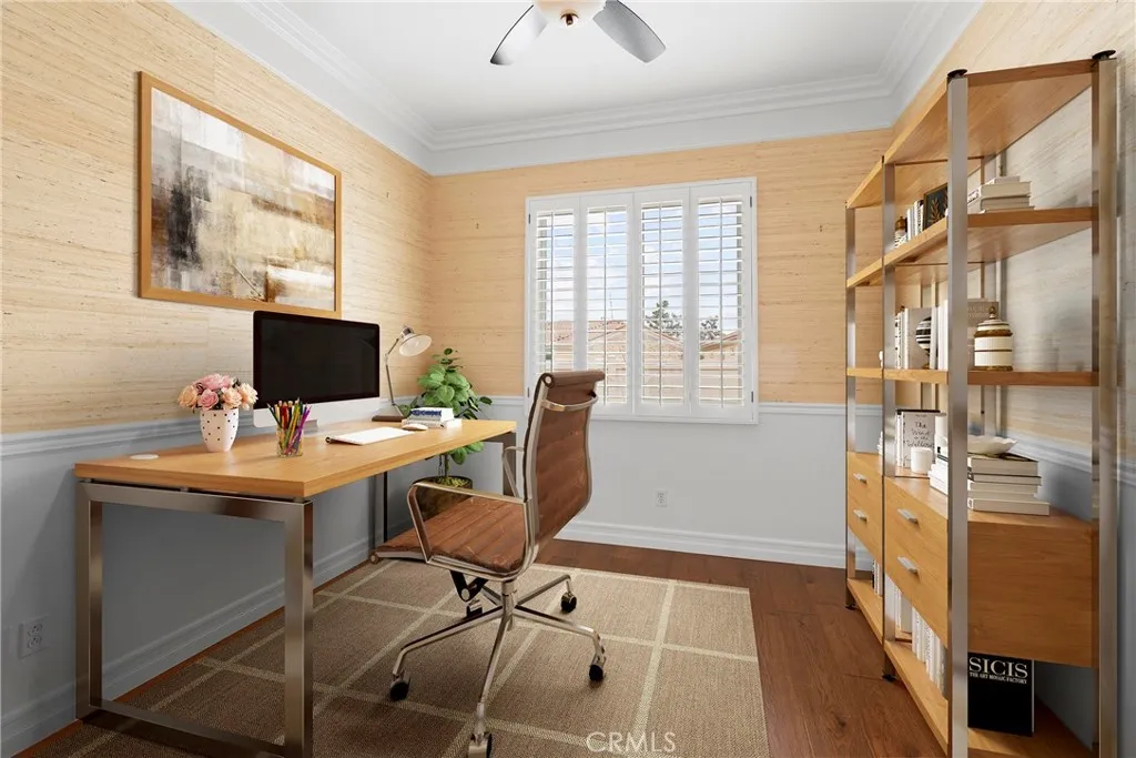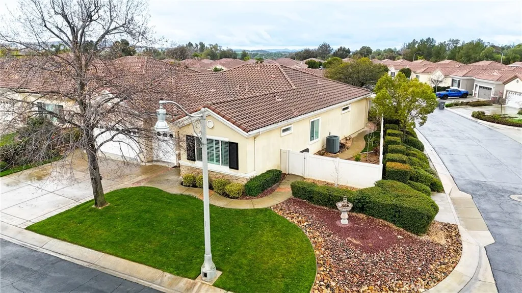 Lots of TASTEFUL UPGRADES with this Spacious 'EMERALD' Model (2 BR 3 BA + Den/Office - 2,127 Sq Ft), Located in the Luxury, 55+ Active, Adult Community of Solera at Oak Valley Greens, on a Quiet Cul-D-Sac Street with a Desirable Corner Lot. It is Beautifully Landscaped Property which brings plenty of Curb Appeal. Features and Upgrades include: A Great Room Concept with TWO Primary Bedrooms (En Suite with Bathrooms & Walk-in Closets thoughtfully located on opposite sides of the Home); Crown Molding; Attractive Hardwood & Tile Flooring throughout; Wonderful Natural Light Flow; a Cozy Fireplace and Large Dining area. We have an Entertainers Kitchen with a large Island/Breakfast Bar with Storage and Lots of Cabinetry & Counter Space. Entertain Your Guests in a Serene & Peaceful Private Back Yard area with a Covered Patio. Solera offers a Pool, Spa, Clubhouse, Indoor Gym, indoor Track, Tennis Courts, Billiards, Meeting & Banquet Rooms, Bocce BallL Library, Classes, Clubs, Group Trips and 24-hour Security. Basic Spectrum Cable and Internet are included with your HOA. Solera is close to Palm Springs, Redlands, Cabazon Outlet Malls, Morongo Casino, Great Golf courses very Close By.