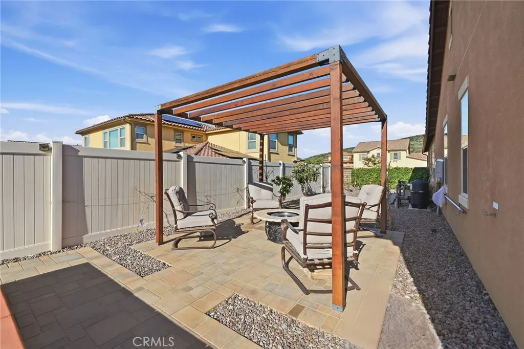 IMMACULATE SINGLE STORY, POOL HOME W/ FULLY PAID SOLAR!! Welcome to this highly upgraded single-story 3-bedroom + den/office home, thoughtfully designed for both everyday living and effortless entertaining. From the moment you step inside, youre greeted by upgraded tile flooring and crown molding throughout, creating a clean, seamless flow across the entire home. The spacious great room serves as the heart of the house and connects to the outdoors through the expansive sliding glass doors, flooding the space with natural light. The kitchen and living areas open to a covered California room, perfect for indoor-outdoor living year-round. The primary suite is your personal sanctuary - bright, peaceful, and perfectly positioned for privacy. Large windows and a ceiling fan enhance the serene atmosphere, while the en-suite bathroom invites you to slow down with a center soaking tub, dual vanities, and a spa-inspired walk-in shower serving as your own retreat at the end of the day. Step into your private backyard oasis featuring a sparkling pool and spa, low maintenance landscaping, built-in BBQ, generous side yard, and a stunning stone fire pit accent wall that anchors the space for cozy evenings and entertaining under the stars. This home is upgraded throughout and includes fully paid solar with three battery packs, a 3-car tandem garage with EV charger, and smart, energy-efficient features that offer both comfort and peace of mind. Located in the highly rated Temecula School District, just minutes from parks, shopping, and dining, with low HOA dues. This home is stylish, functi